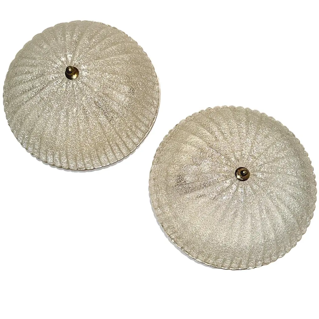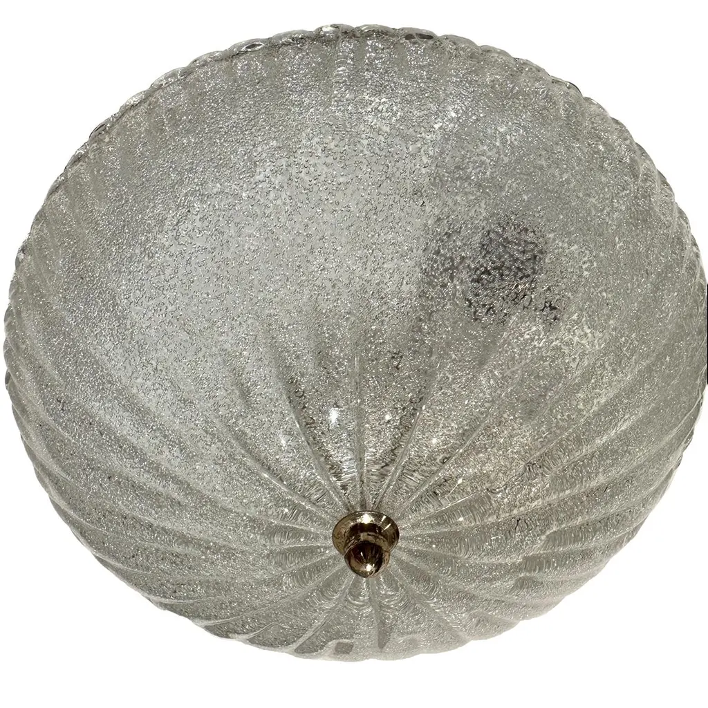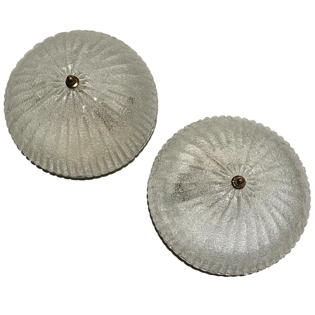 Pair of circa 1960's molded glass flush mounted light fixtures with an interior Edison light. Sold individually.Measurements:Diameter: 10"Height of body: 4.5"