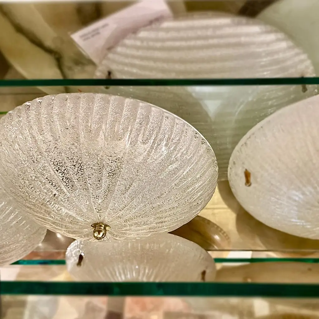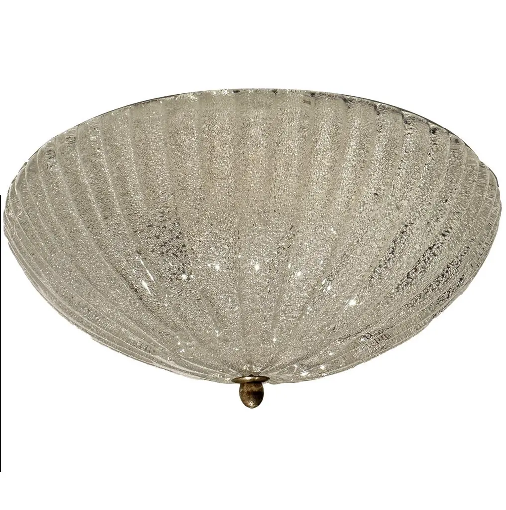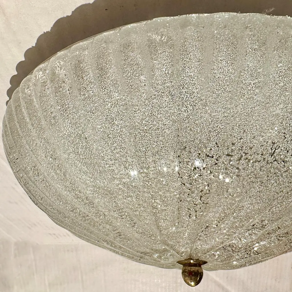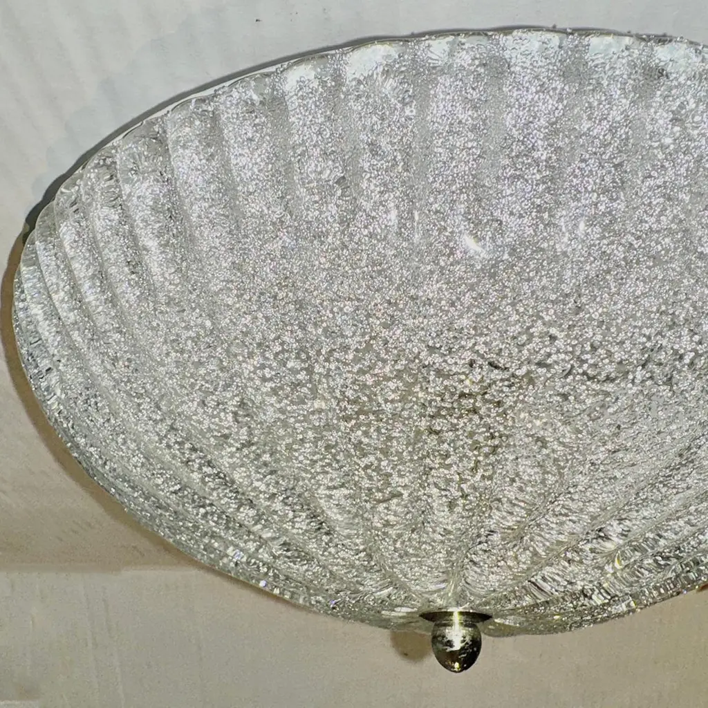 Pair of circa 1960's molded glass flush mounted light fixtures with an interior Edison light. Sold individually.Measurements:Diameter: 10"Height of body: 4.5"
