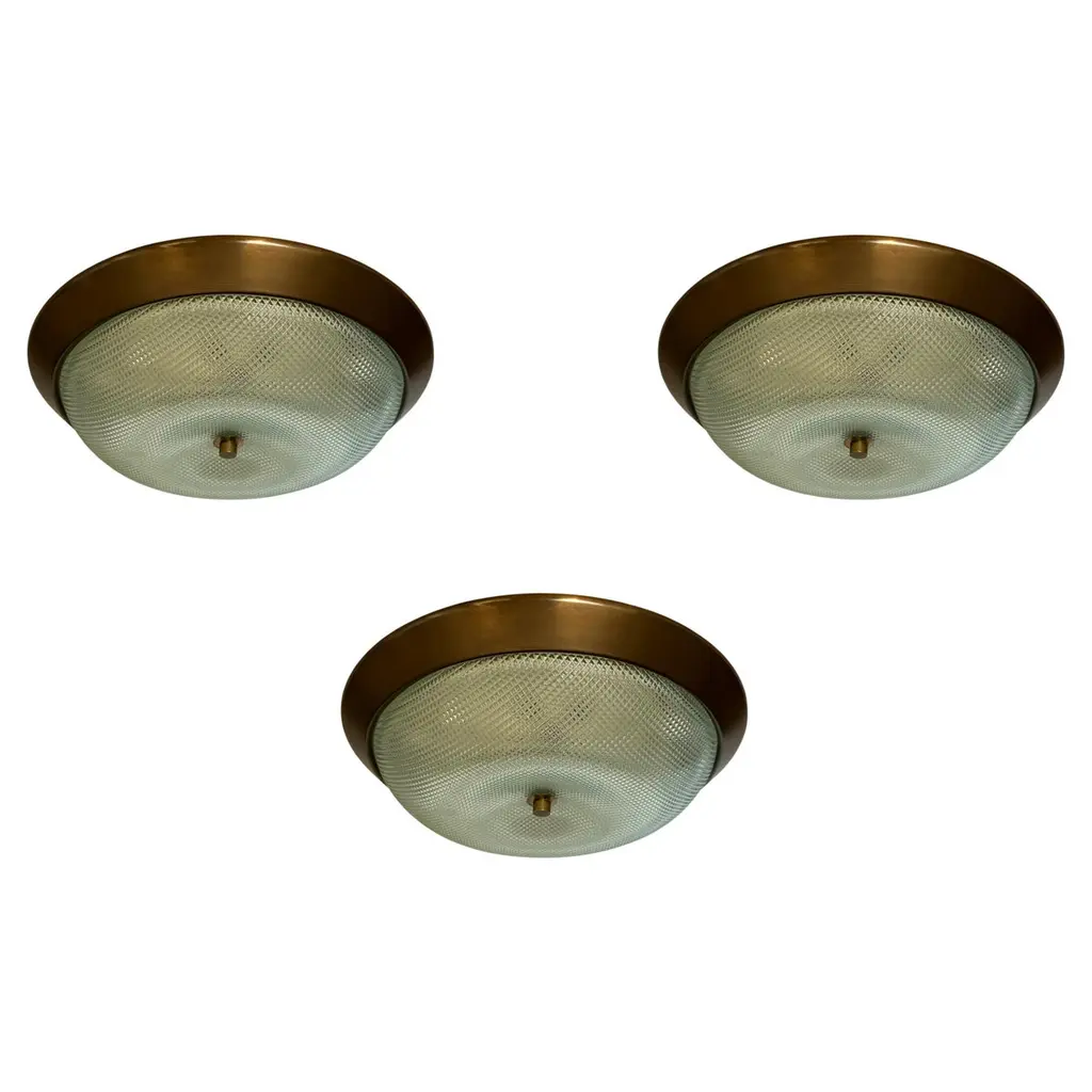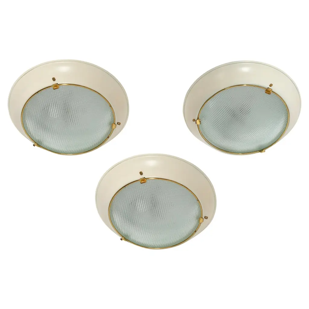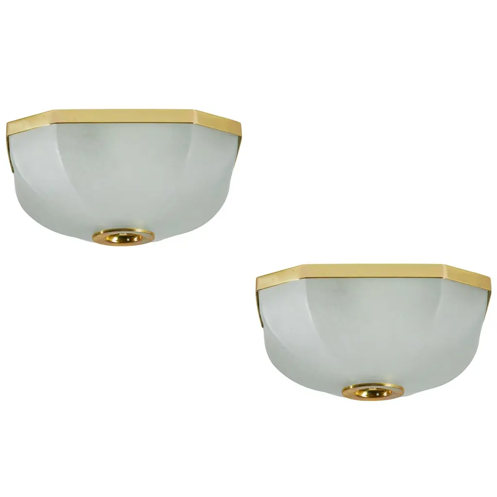 Superb pair of flush mount in the style of Pierre Guariche. Two-light per flush mount, 60 watts max per light. US rewired and in working condition.