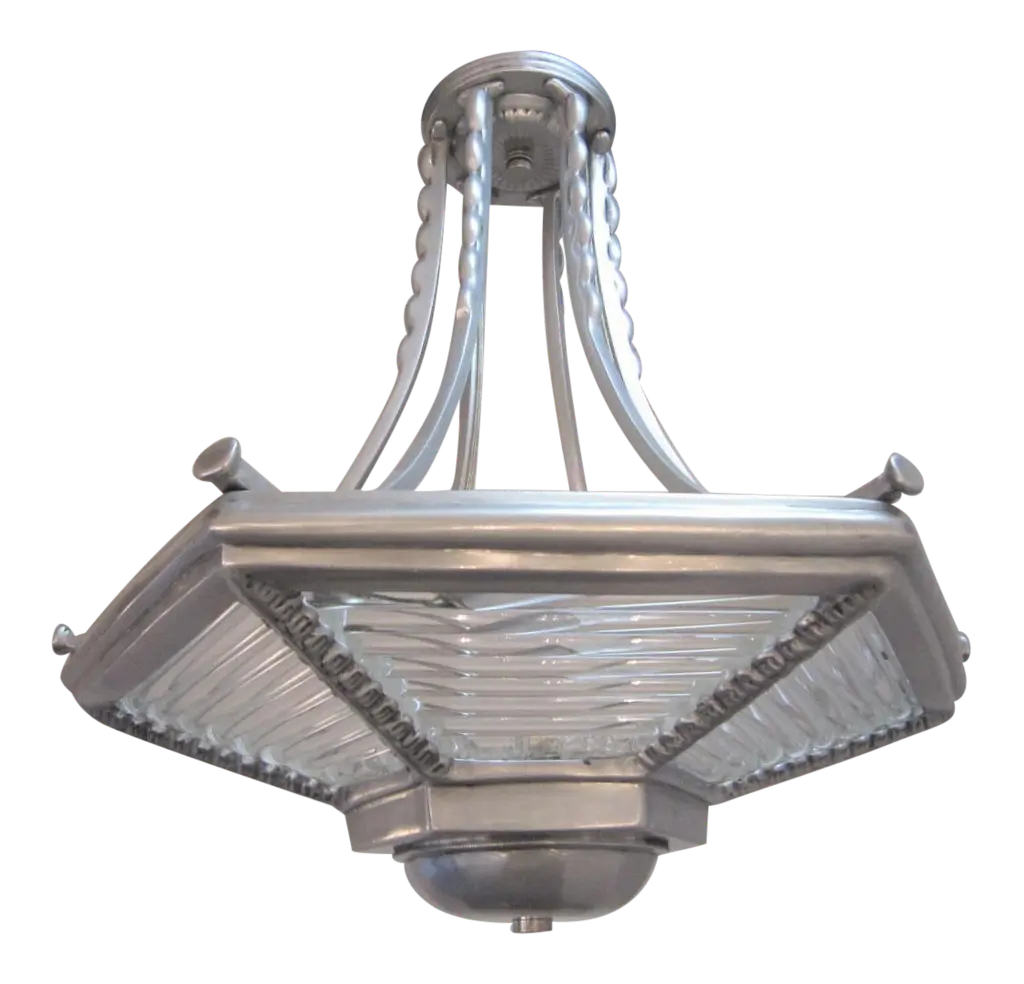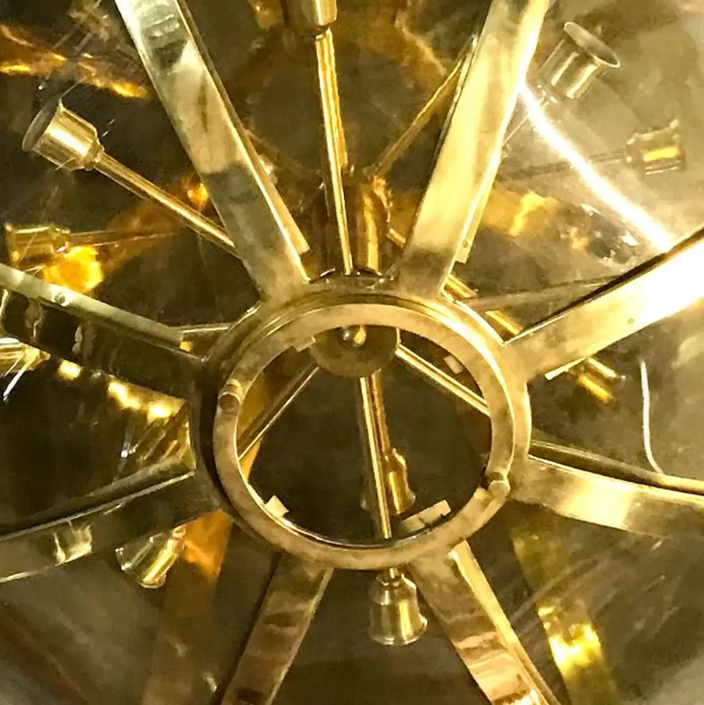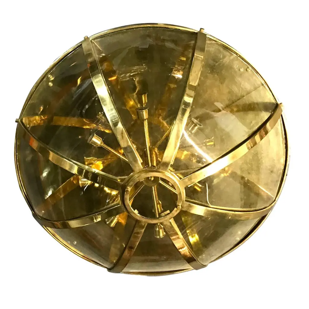 A pair of large French circa 1960's gilt bronze flush mounted light fixtures with eight interior lights. Sold individually.Measurements:Diameter: 34"Drop: 10"