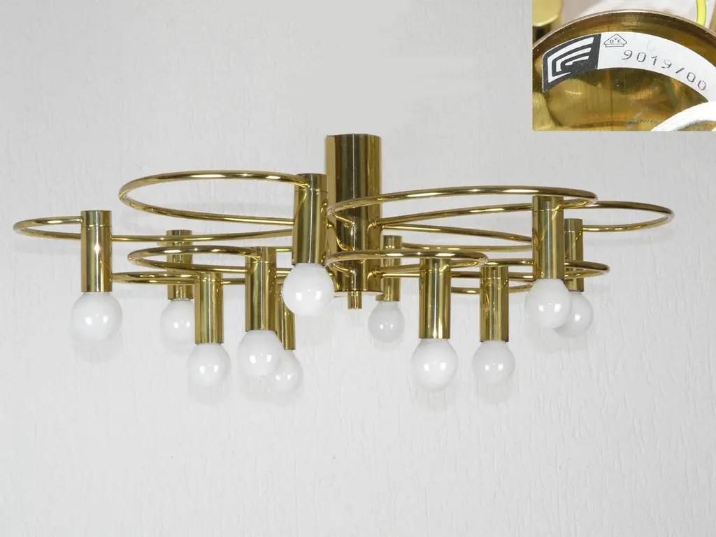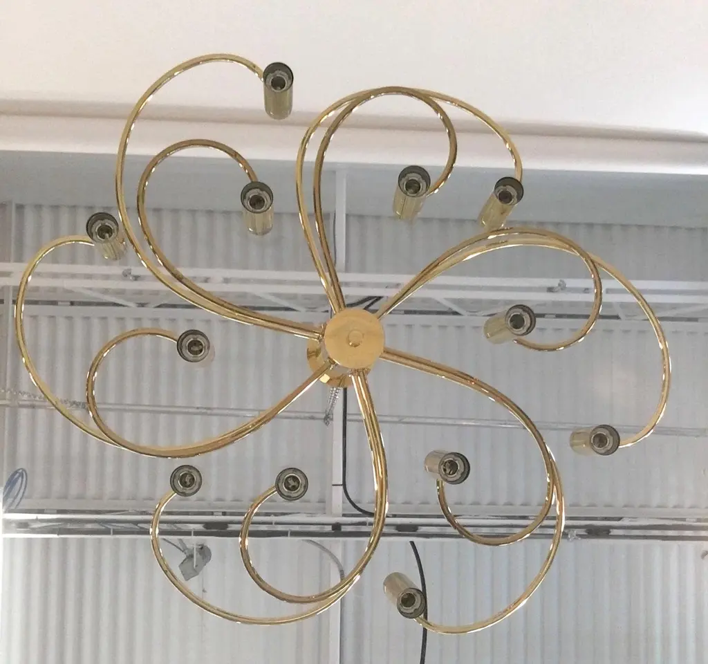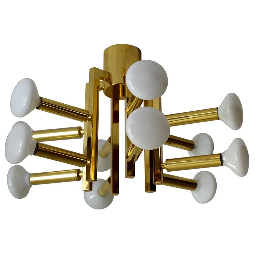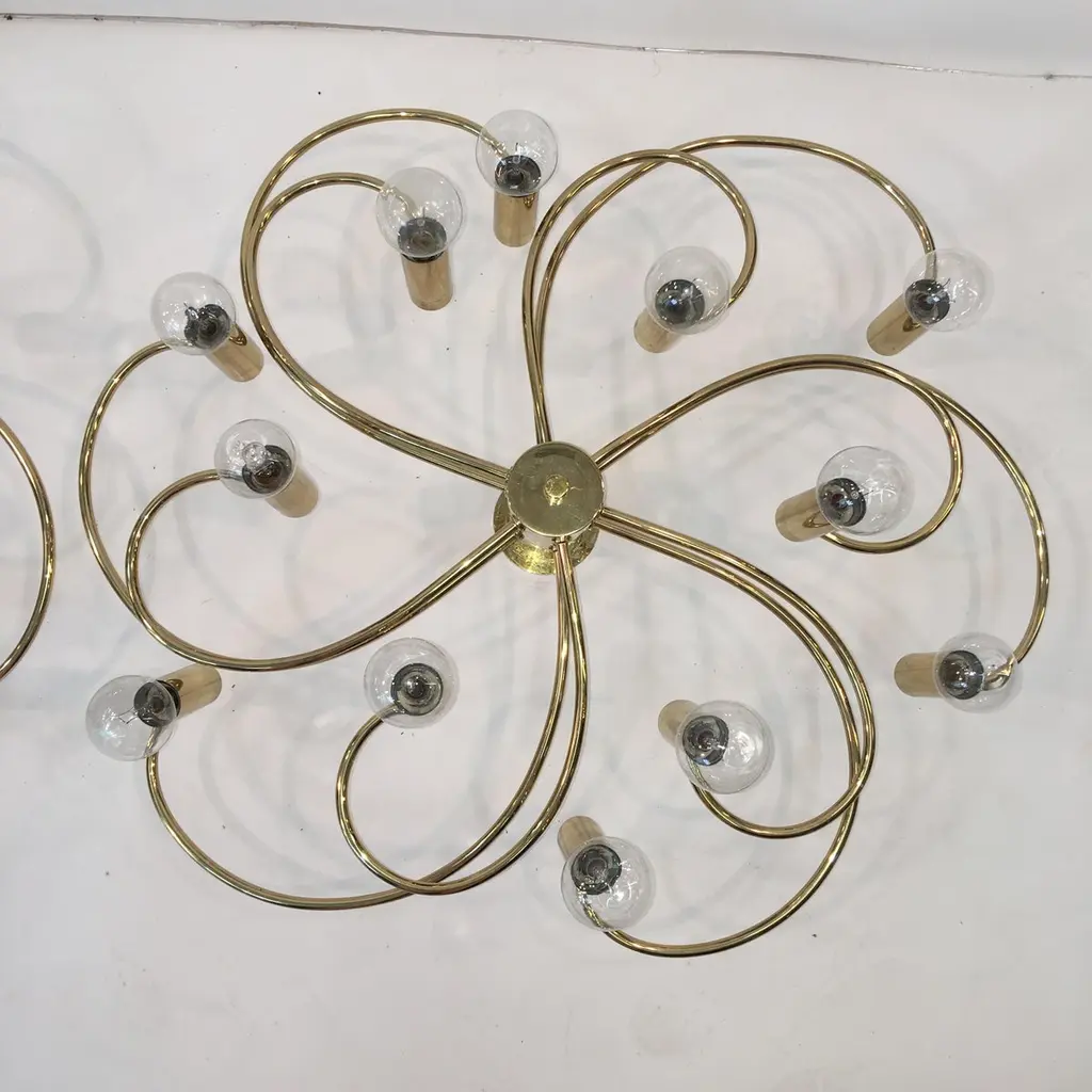Pair Of Whimsical Twelve-Light Brass Flush Mounts