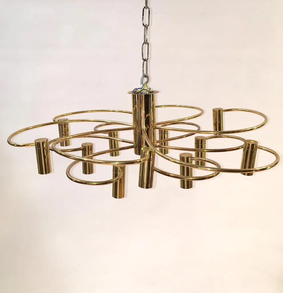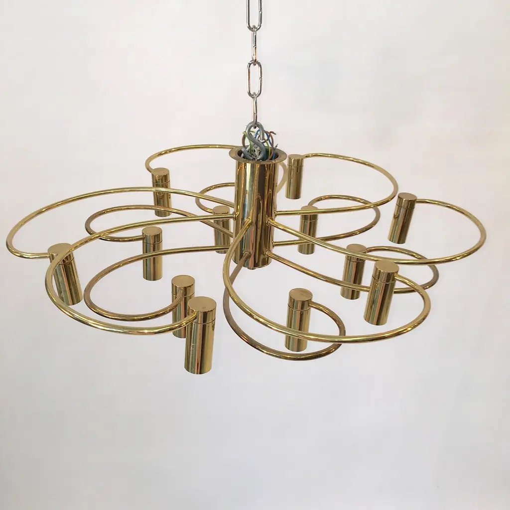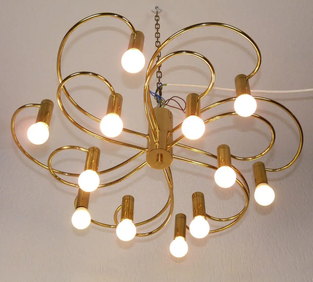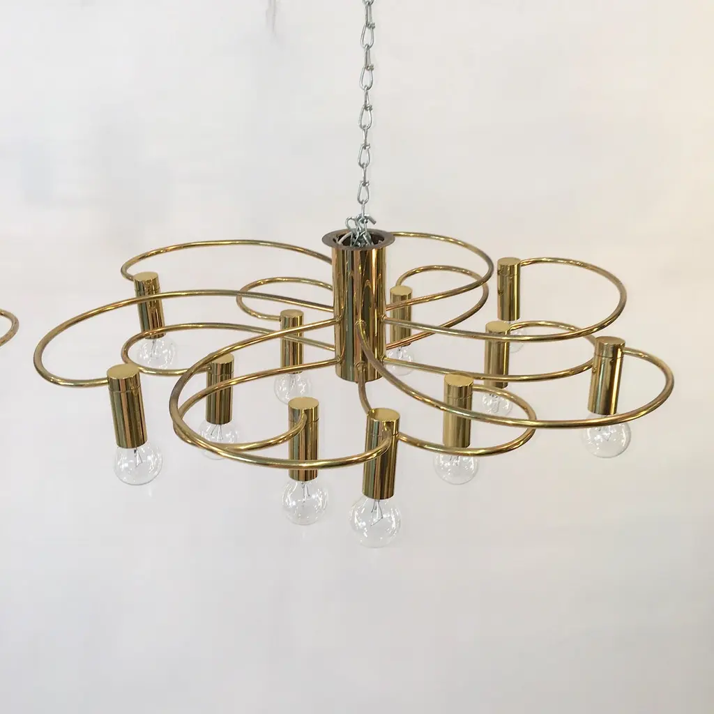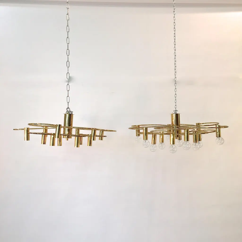 Pair Of Whimsical Twelve-Light Brass Flush Mounts
