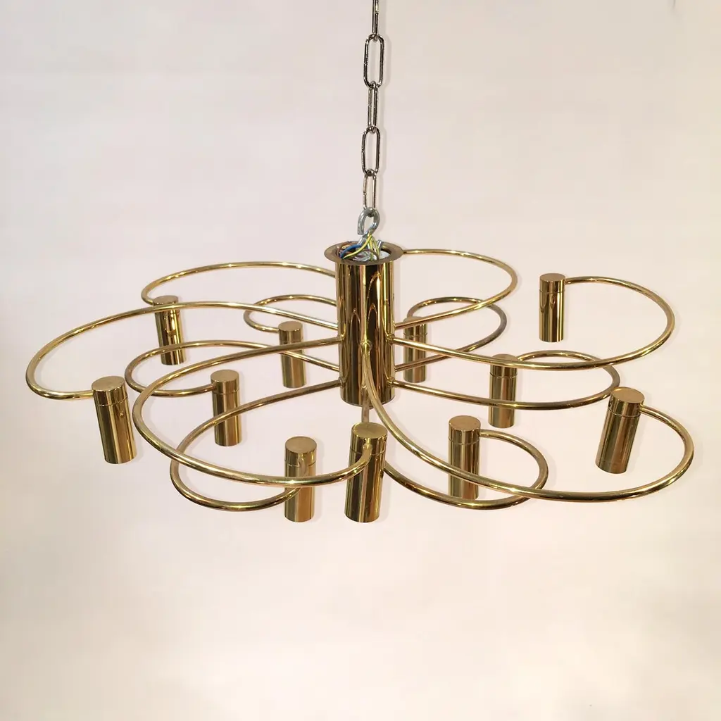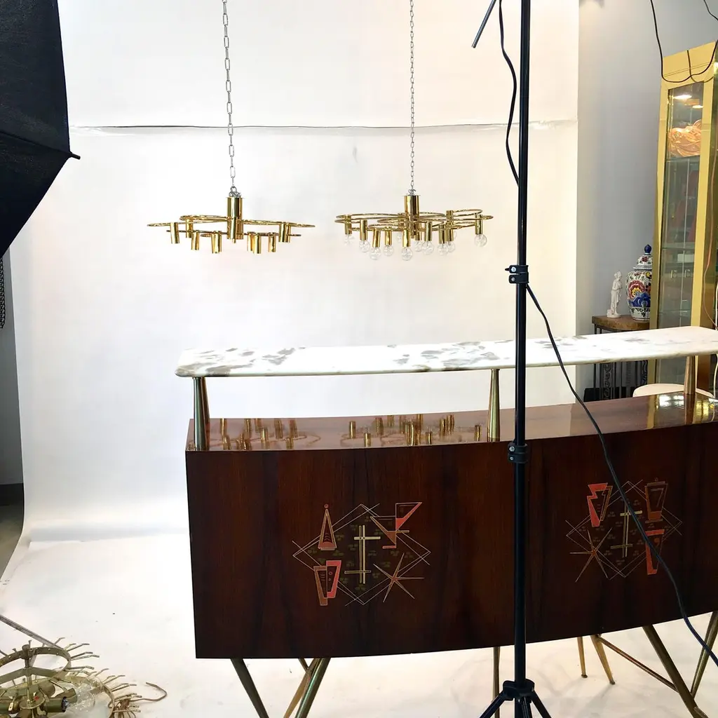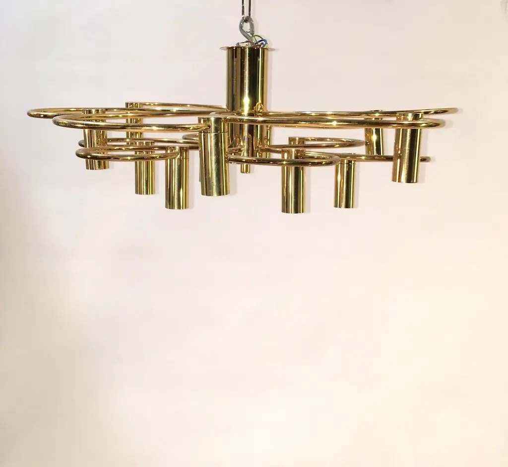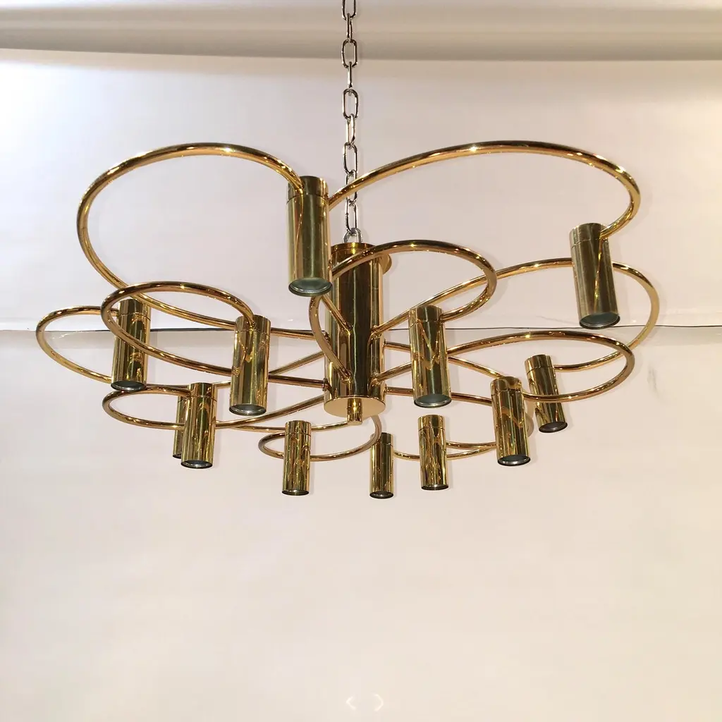 Pair Of Whimsical Twelve-Light Brass Flush Mounts