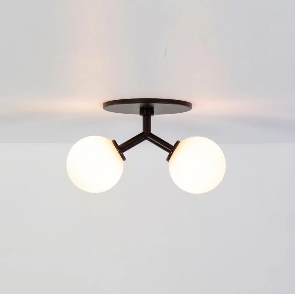 Pair Of Y Flush Mounts By Research.lighting, Black, 3In Glass, Made To Order