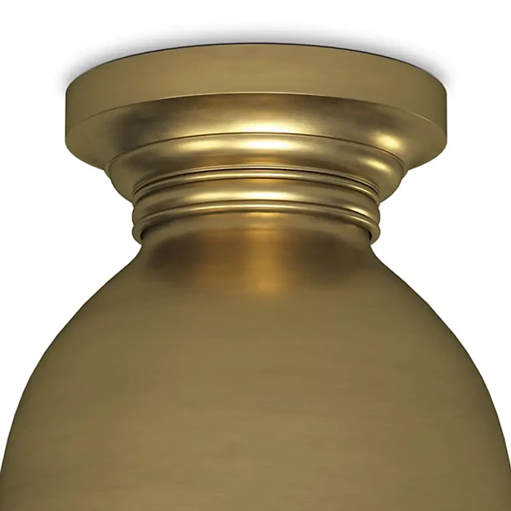 The Pantry Flushmount from Regina Andrew adds a dash of ease and sophistication to open or tight spaces with a compact transitional design. The piece uses clean forms and decoration to complement understated or eclectic spaces. Its disc-shaped canopy lays flush on the ceiling with a crisp edge. Stepped accenting below makes clear the piece’s antique-style personality. These layered accents pop visually as they catch crisp highlights. The dome metal shade at the base surrounds the lamping to funnel its light and ease its glare. The piece generates a relaxed, down-streaming glow.