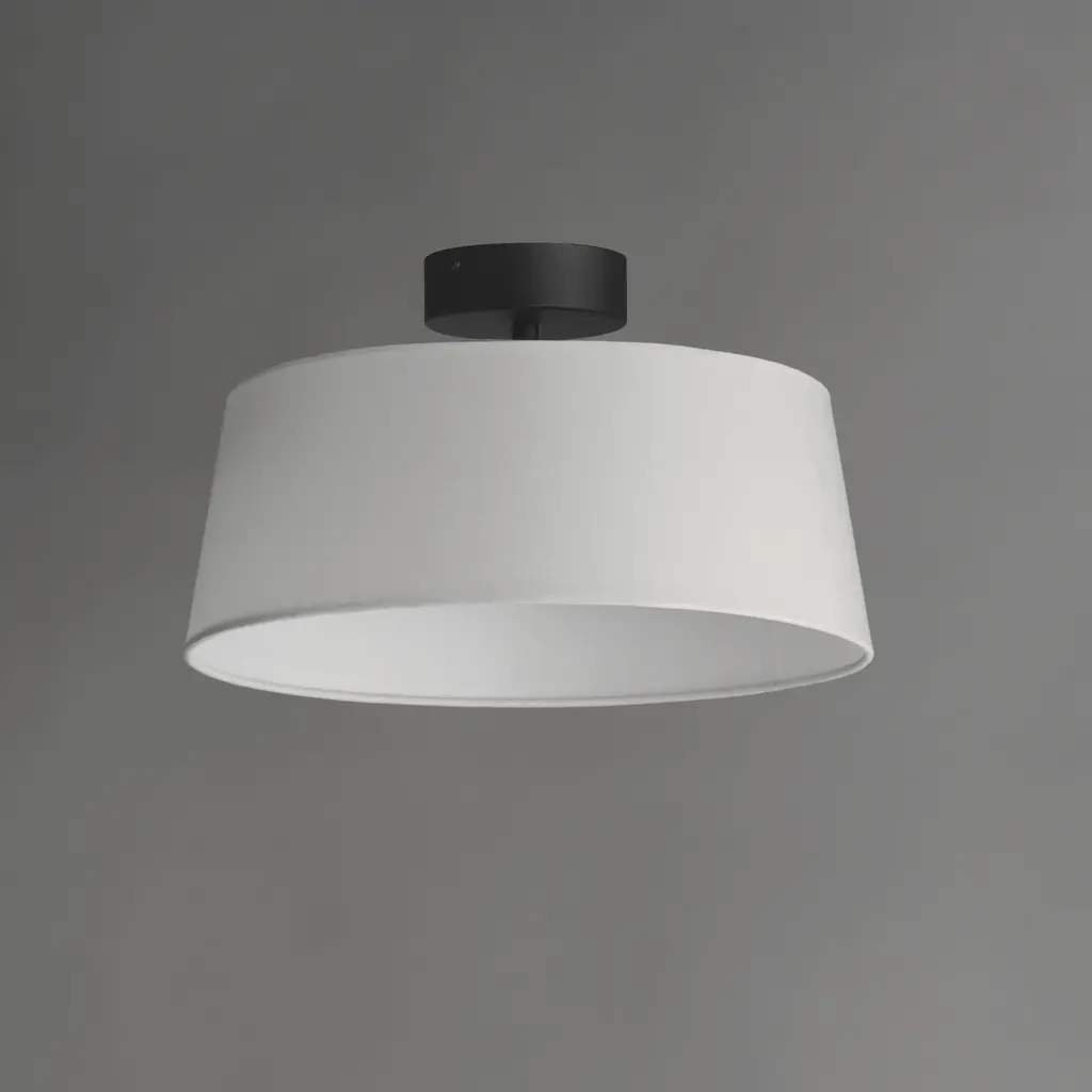 Truncated tapered cones of linen shades diffuse light from an LED ring within them. The LED lighting offers ample illumination that is softly diffused behind the shade. A two-pronged fork detail supports the ring within further modernizing this transitional look. Available in Natural Aged Brass with an Off-White Linen shade or Matte Black with a White Linen shade, these pieces conveniently coordinate with most interiors.