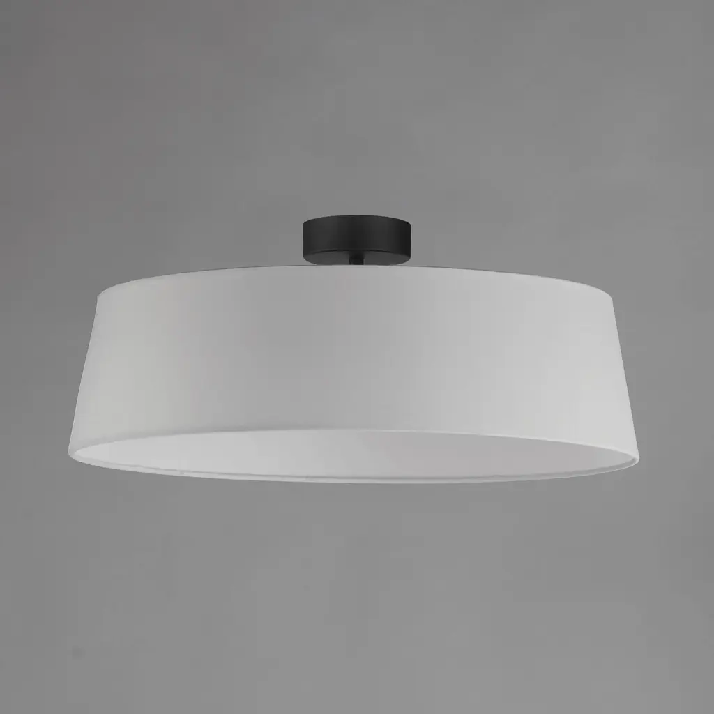 Truncated tapered cones of linen shades diffuse light from an LED ring within them. The LED lighting offers ample illumination that is softly diffused behind the shade. A two-pronged fork detail supports the ring within further modernizing this transitional look. Available in Natural Aged Brass with an Off-White Linen shade or Matte Black with a White Linen shade, these pieces conveniently coordinate with most interiors.