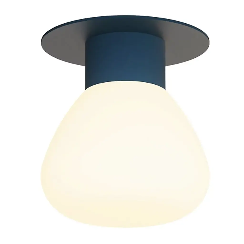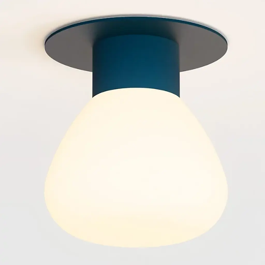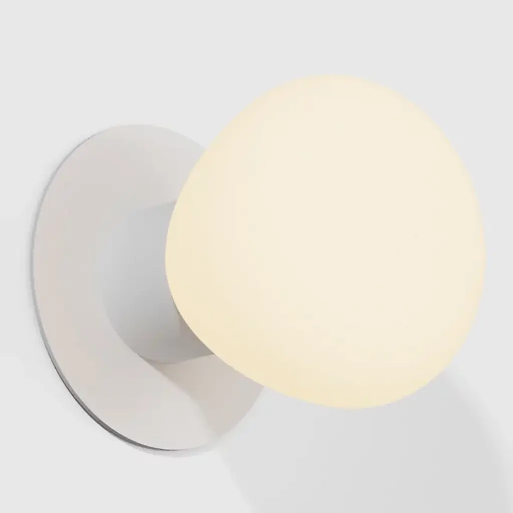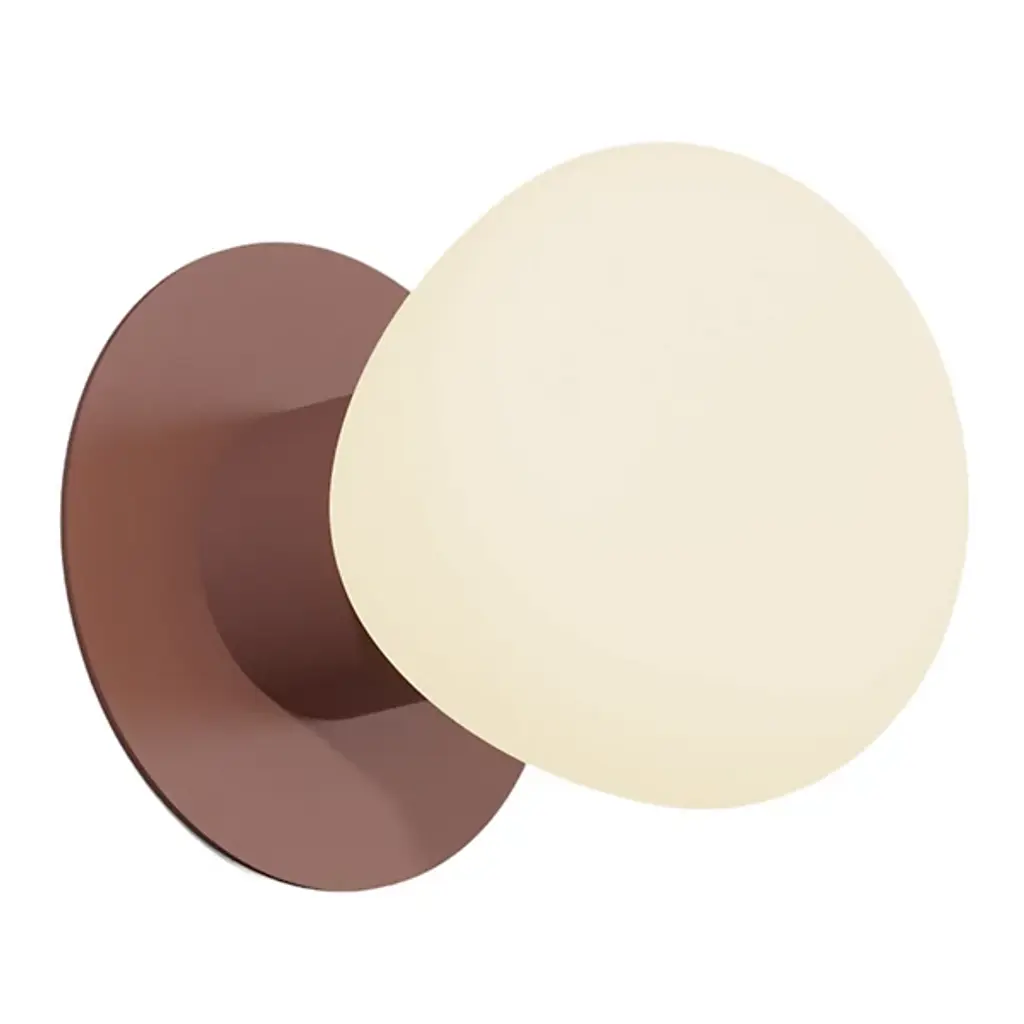 The Parc Wall / Flushmount from Lambert & Fils provides a casual, iconic appeal to interiors. A 2023 creation by Swiss designer Adrien Rovero, it evokes the stylized form of a flashlight, evoking childhoods spent in nature when tubes and strings could become any toy or fantastic creation. Endearingly naïve and elegantly functional, a circular plate and small collar hold the fixture to its surface. A hand-blown bulb-shaped diffuser moderates bright light into a generous ambiance that extends around the fixture, burnishing the smooth metalwork and sparking the imagination of anyone who sees it.