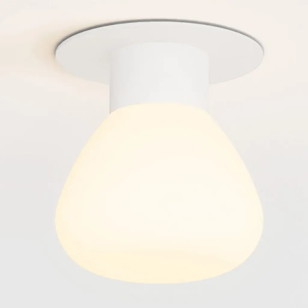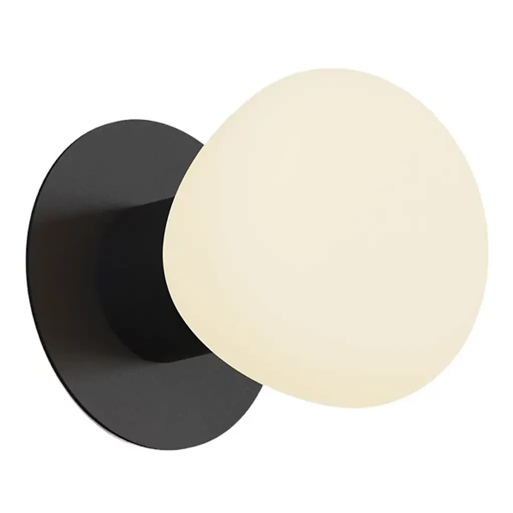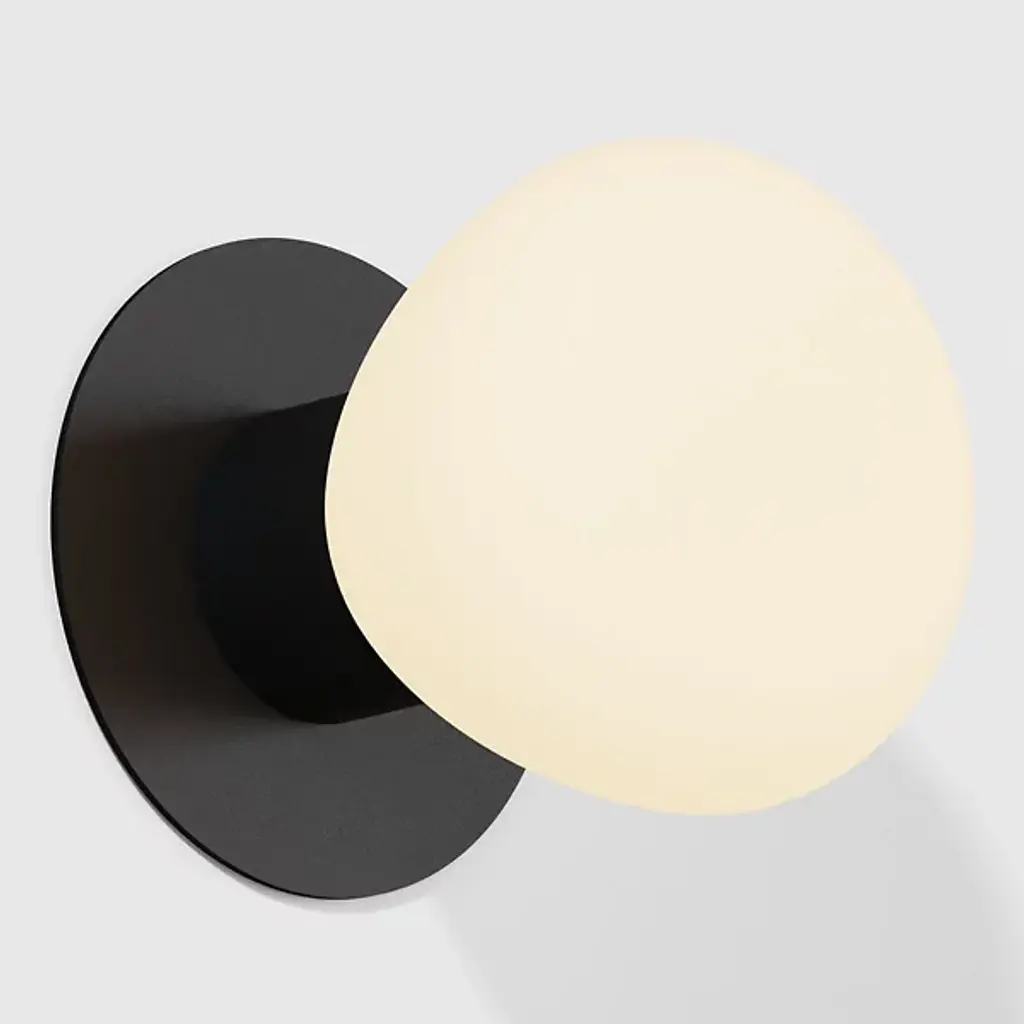 The Parc Wall / Flushmount from Lambert & Fils provides a casual, iconic appeal to interiors. A 2023 creation by Swiss designer Adrien Rovero, it evokes the stylized form of a flashlight, evoking childhoods spent in nature when tubes and strings could become any toy or fantastic creation. Endearingly naïve and elegantly functional, a circular plate and small collar hold the fixture to its surface. A hand-blown bulb-shaped diffuser moderates bright light into a generous ambiance that extends around the fixture, burnishing the smooth metalwork and sparking the imagination of anyone who sees it.