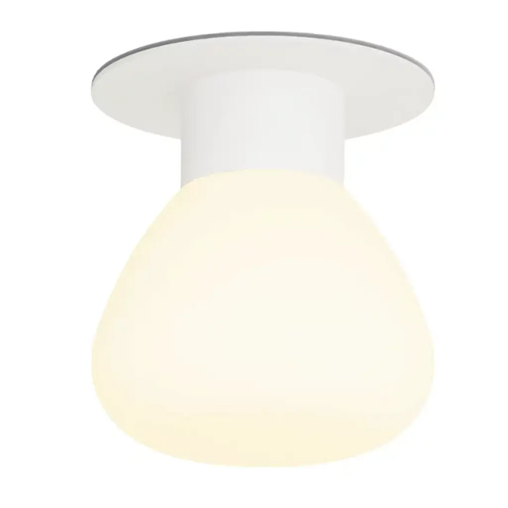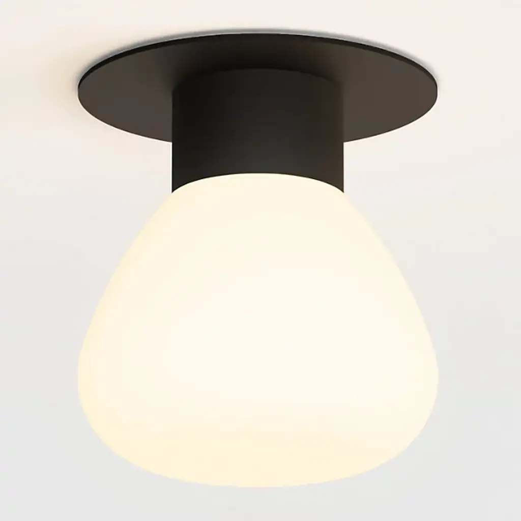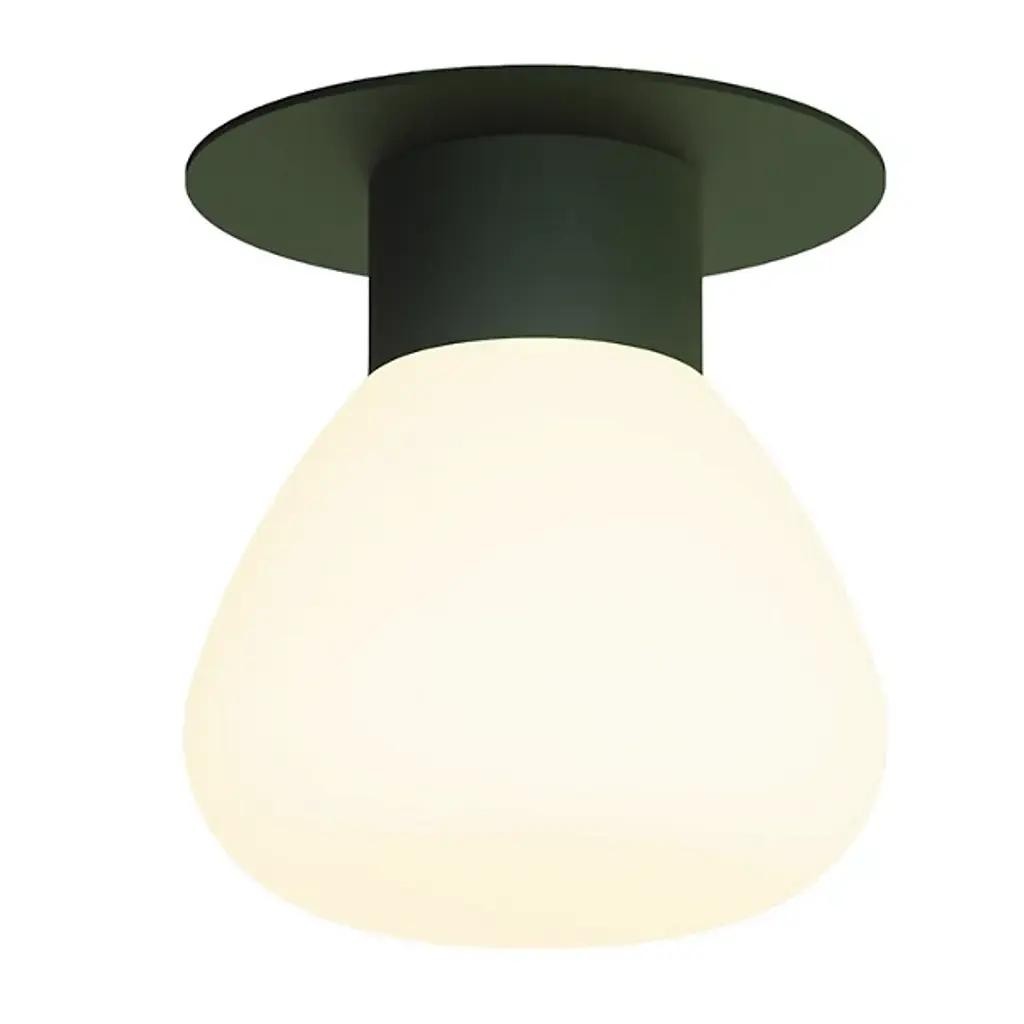 The Parc Wall / Flushmount from Lambert & Fils provides a casual, iconic appeal to interiors. A 2023 creation by Swiss designer Adrien Rovero, it evokes the stylized form of a flashlight, evoking childhoods spent in nature when tubes and strings could become any toy or fantastic creation. Endearingly naïve and elegantly functional, a circular plate and small collar hold the fixture to its surface. A hand-blown bulb-shaped diffuser moderates bright light into a generous ambiance that extends around the fixture, burnishing the smooth metalwork and sparking the imagination of anyone who sees it.