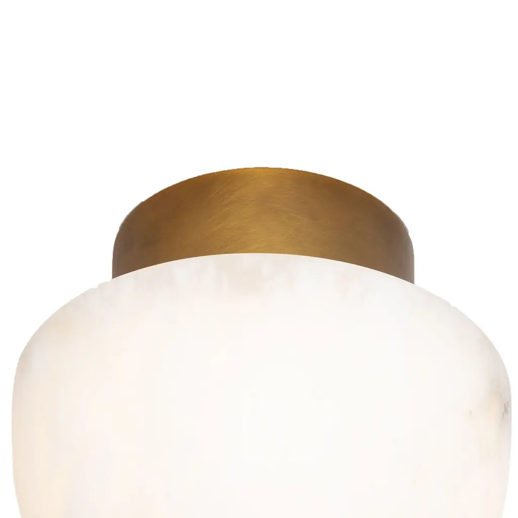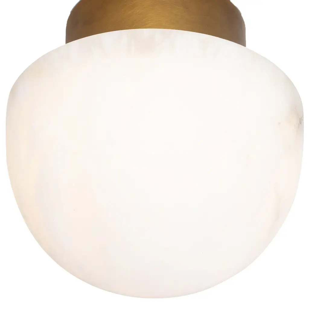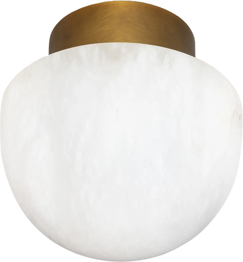 The Parker is a deco-inspired flush mount featuring a striking globe made of natural alabaster and a metal canopy. Let the warm and diffused glow of the Parker illuminate your home in style.