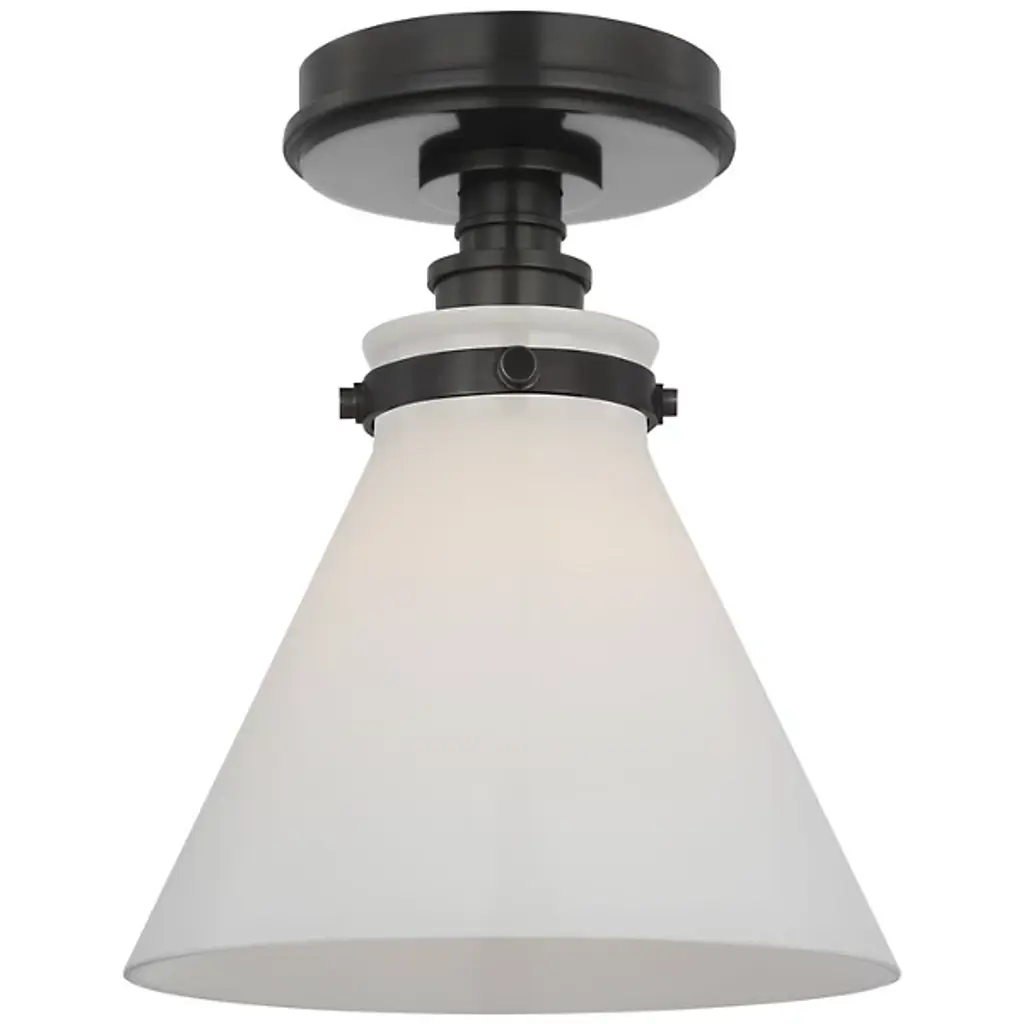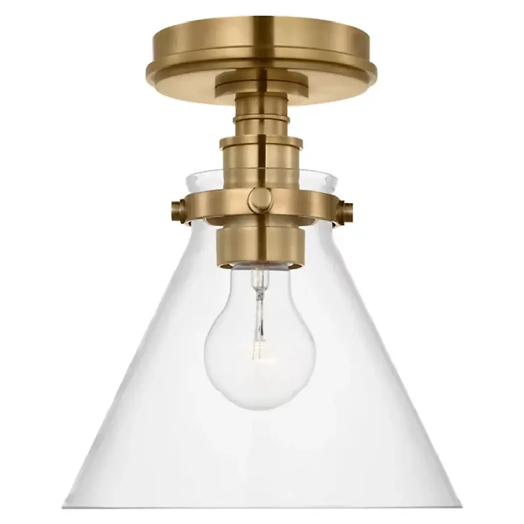 The Parkington Cone Flushmount from Visual Comfort Signature effortlessly combines contemporary style with timeless elegance. Crafted from brass with a sleek glass shade, this fixture exudes sophistication in any space. Designed by Chapman & Myers, its minimalist design adds a modern touch while providing ample illumination. Whether installed in the hallway, bedroom, or living room, the Parkington Conical Flushmount offers a seamless blend of form and function, enhancing your decor with its refined aesthetic and versatile appeal.