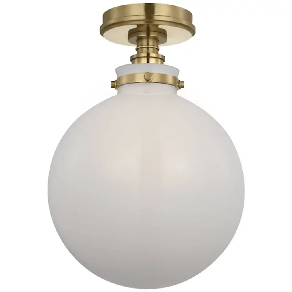 The Parkington Flushmount from Visual Comfort Signature blends contemporary style with timeless elegance. Crafted from brass with a sleek glass shade, this fixture exudes sophistication. Designed by Chapman & Myer, its minimalist design adds a modern touch to any room while providing ample illumination. Whether installed in the hallway, bedroom, or living room, this flushmount offers a seamless blend of form and function, enhancing your decor with its refined aesthetic.