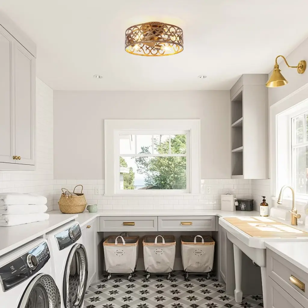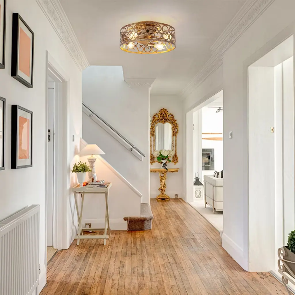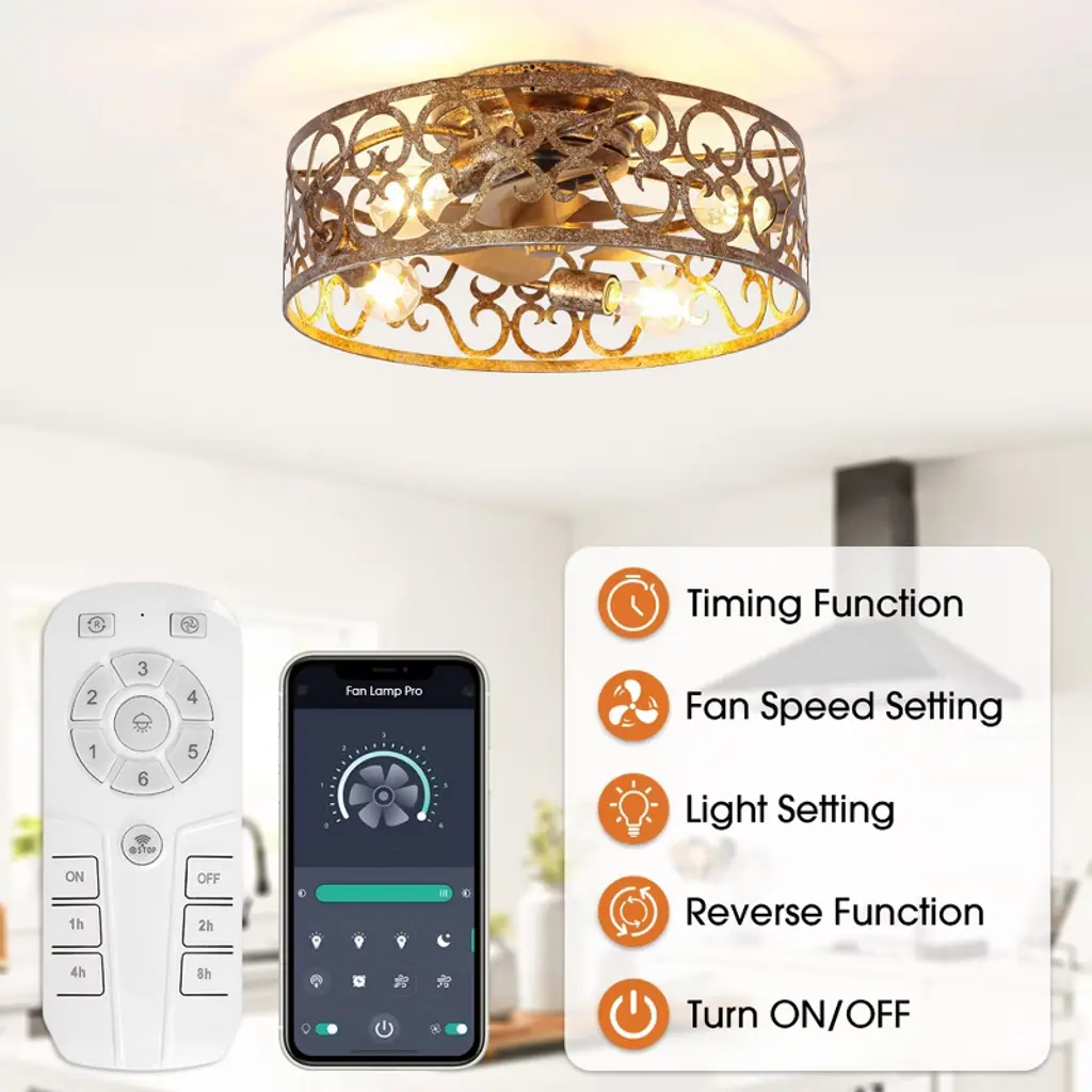 This vintage ceiling fan features an openwork shade with an auspicious cloud motif, signifying good fortune and blessings. 5 fan blades are paired with a reversible motor for year-round use. Comes with a remote control for quick and easy use. Especially suitable for small rooms, such as small bedrooms, entrance halls, and dining tables. Support multiple control methods, remote control, APP control, and voice assistant.