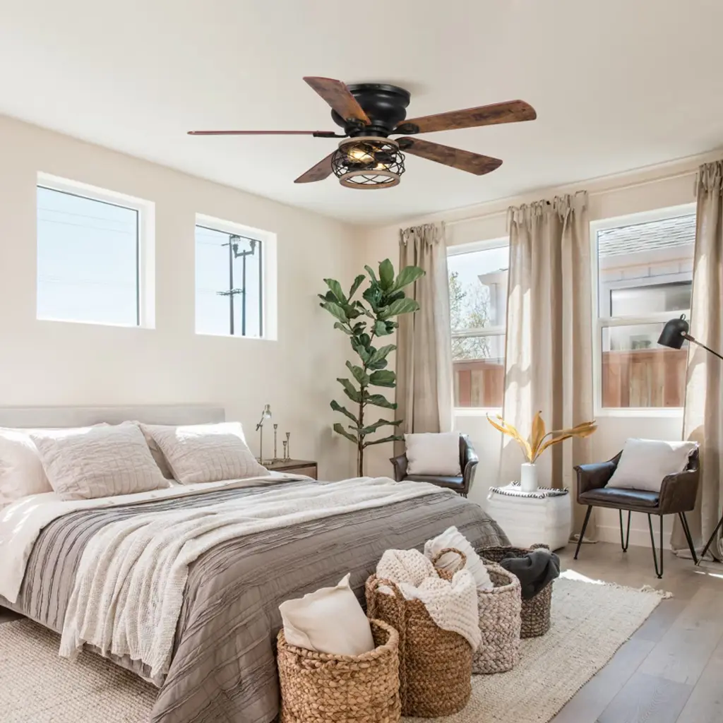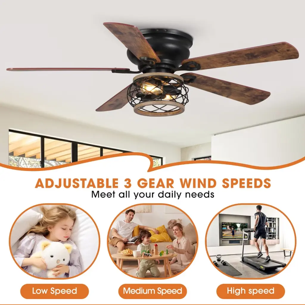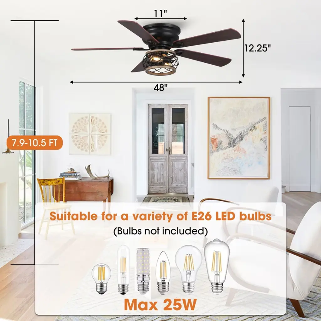 The low-profile ceiling fans with light and a bulb are not included; they support remote control, 3-speed wind speed adjustment, AC reversible motor with 5 reversible fan blades, and a maximum airflow 2481, and they can realize efficient air circulation. A remote-controllable ceiling fan is suitable for most family rooms.