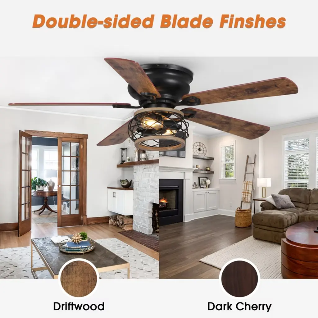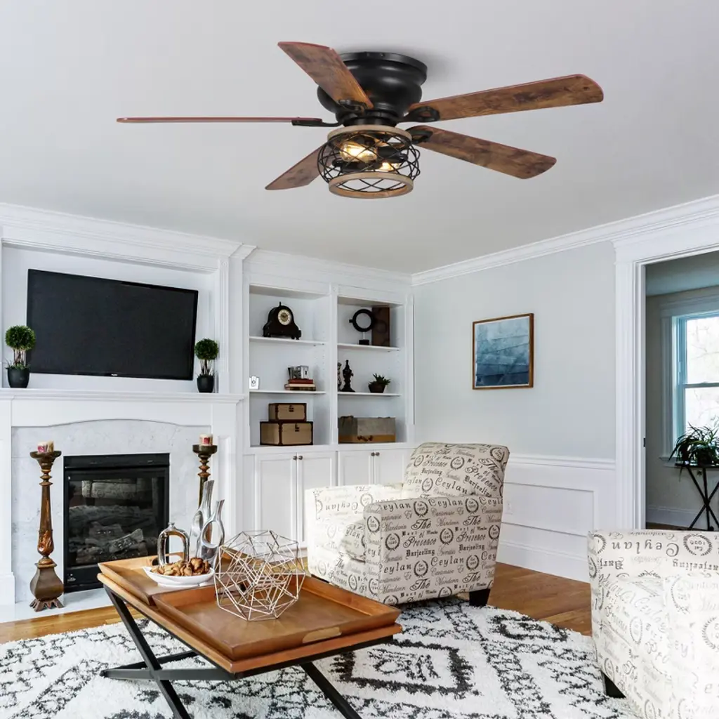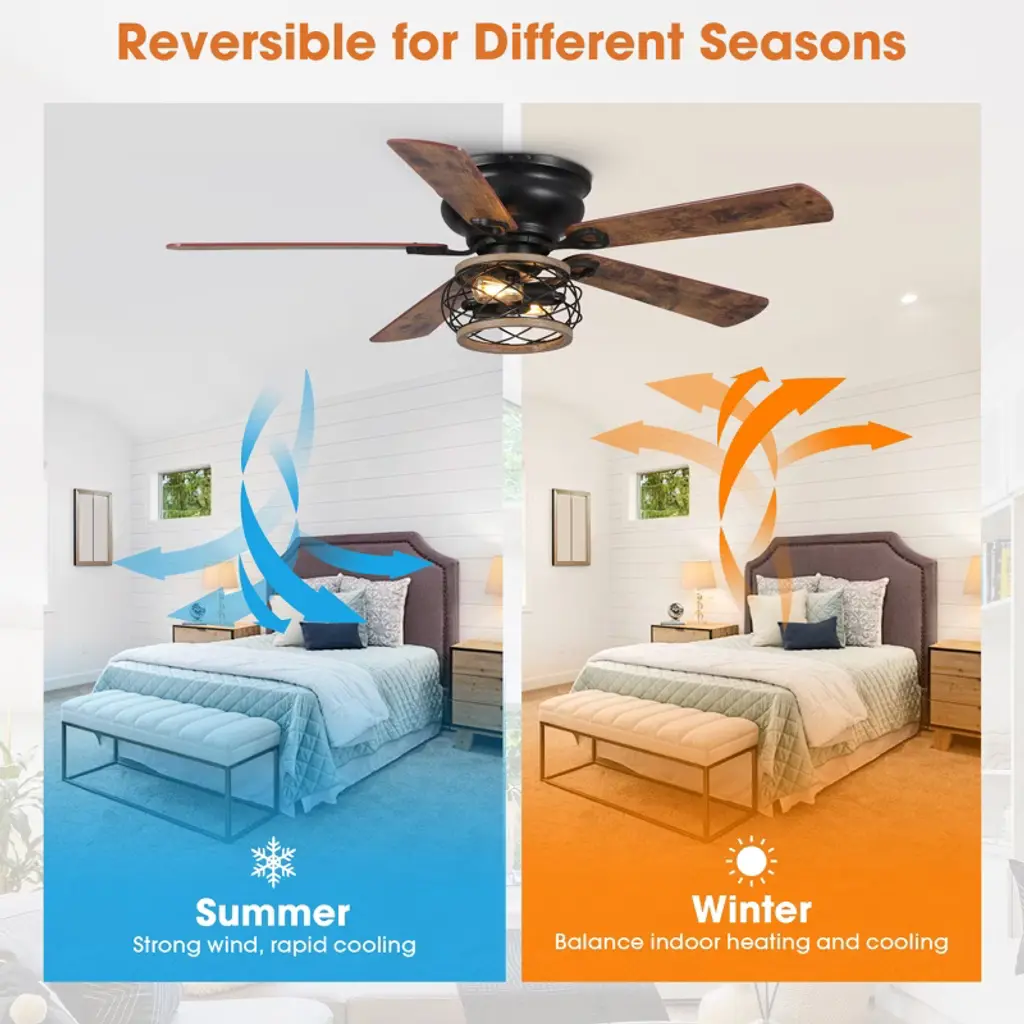 The low-profile ceiling fans with light and a bulb are not included; they support remote control, 3-speed wind speed adjustment, AC reversible motor with 5 reversible fan blades, and a maximum airflow 2481, and they can realize efficient air circulation. A remote-controllable ceiling fan is suitable for most family rooms.