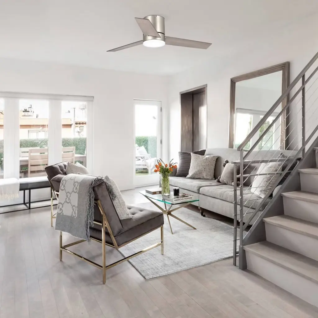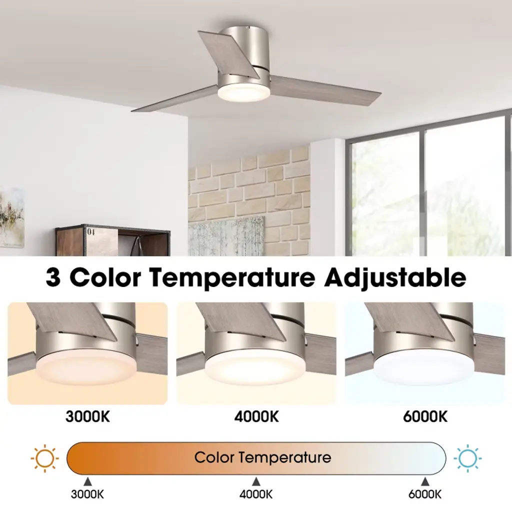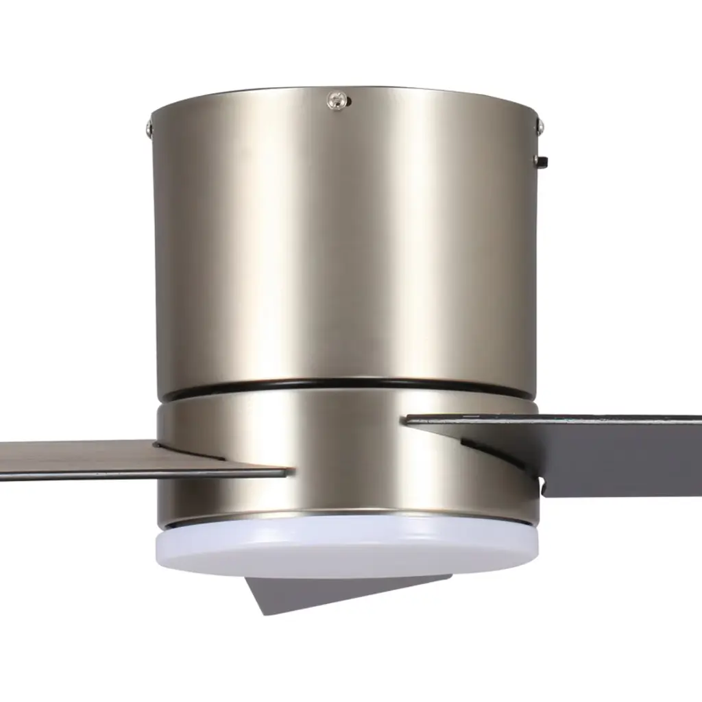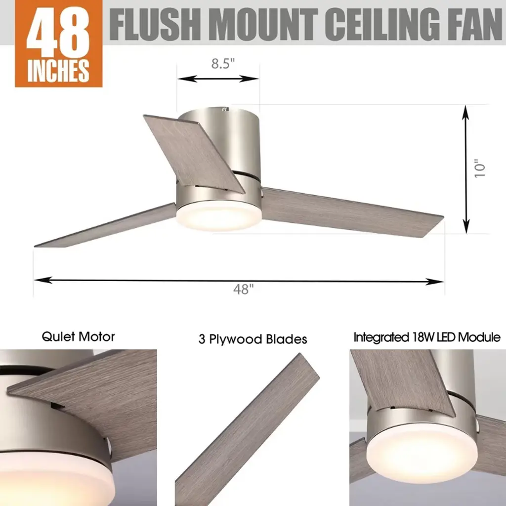 Parrot Uncle 48" Modern Nickel Led Flush Mount Ceiling Fan With Light And Remote