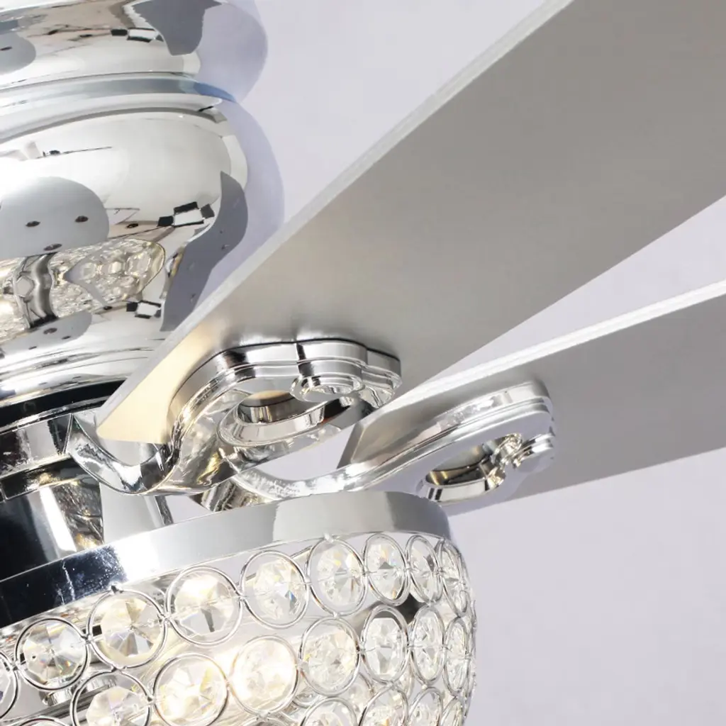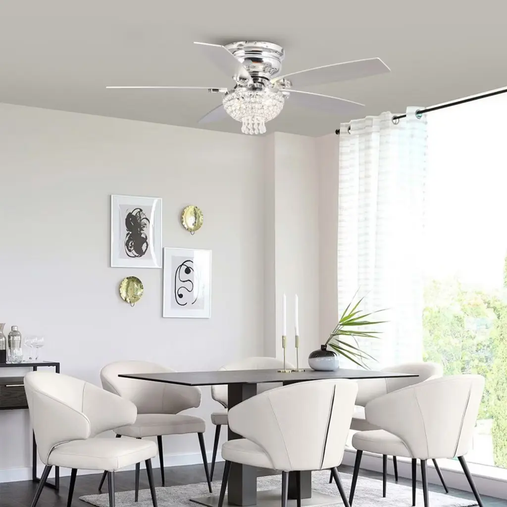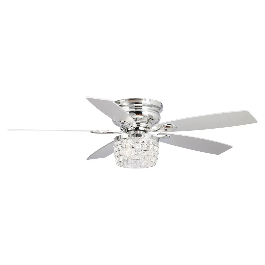Parrot Uncle 52" Modern Chrome Crystal Ceiling Fans With Light And Remote Flush Mount Chandelier