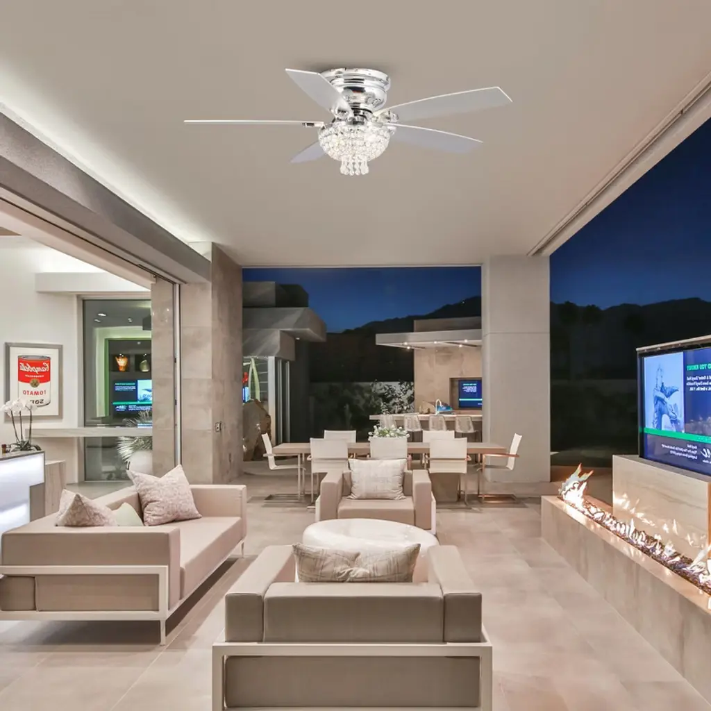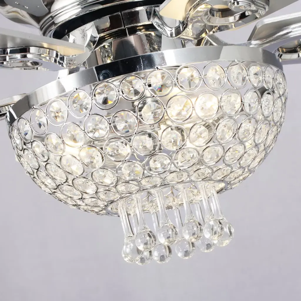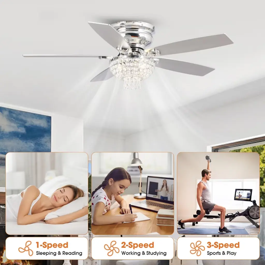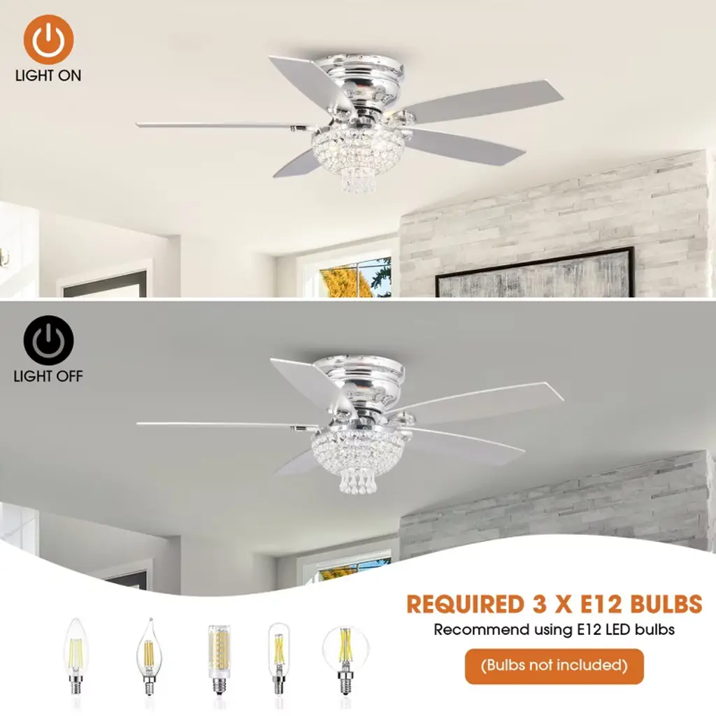 Parrot Uncle 52" Modern Chrome Crystal Ceiling Fans With Light And Remote Flush Mount Chandelier
