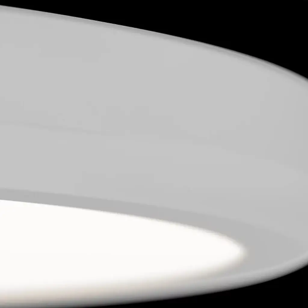 The Parthenon LED Flushmount from dweLED draws inspiration from classical architecture, featuring a rolled aluminum framework that wraps the perimeter in cylindrical folds. This dimensional rim treatment recalls fluted columns while maintaining a low profile against the ceiling. A frosted acrylic diffuser sits recessed within the frame, providing downward illumination while allowing ambient light to escape upward along the edges. The interplay between structural metalwork and translucent plane produces a layered lighting effect that addresses both task and atmospheric needs.