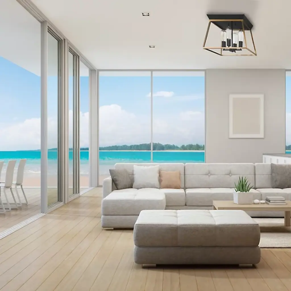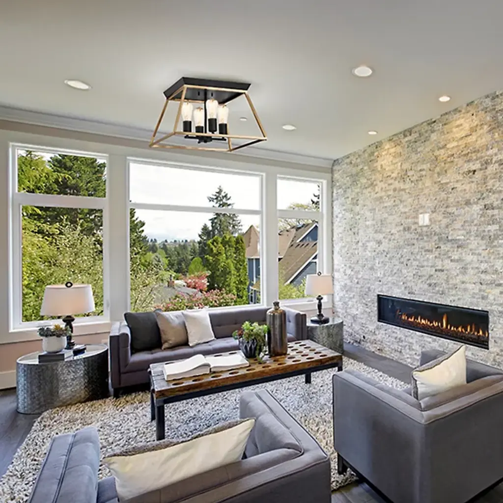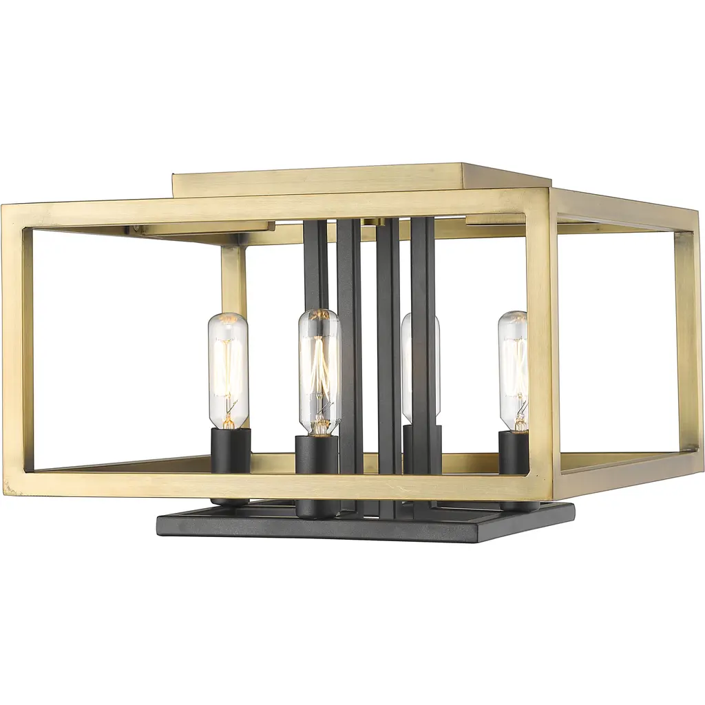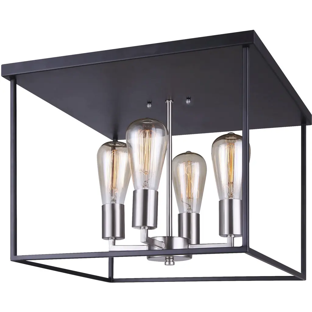 A reworking of a popular on-trend contemporary favorite. Made with an open lantern design, the inspired Paulino 4 Light Flushmount by EGLO is centered around a square frame with a continuous Metal bar piece. That bar is attached to a heavy Metal top piece that’s securely mounted to the ceiling for a built-in architectural quality. The frame houses an unadorned and unshaded vintage style filament bulb set in a simple housing. The result is a highly versatile addition to the modern living room or bedroom that connects with the viewer without overpowering the modern subtle elements of transitional decor.