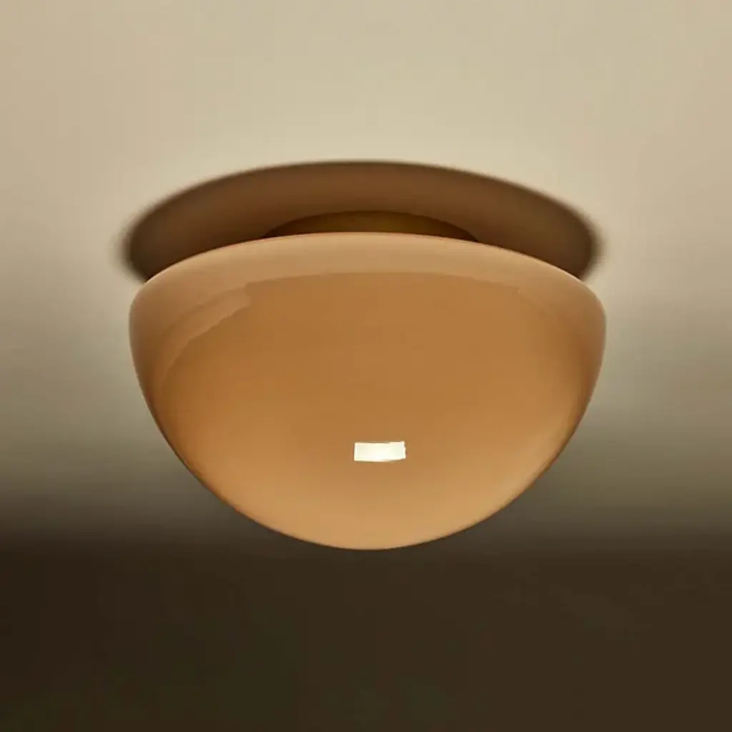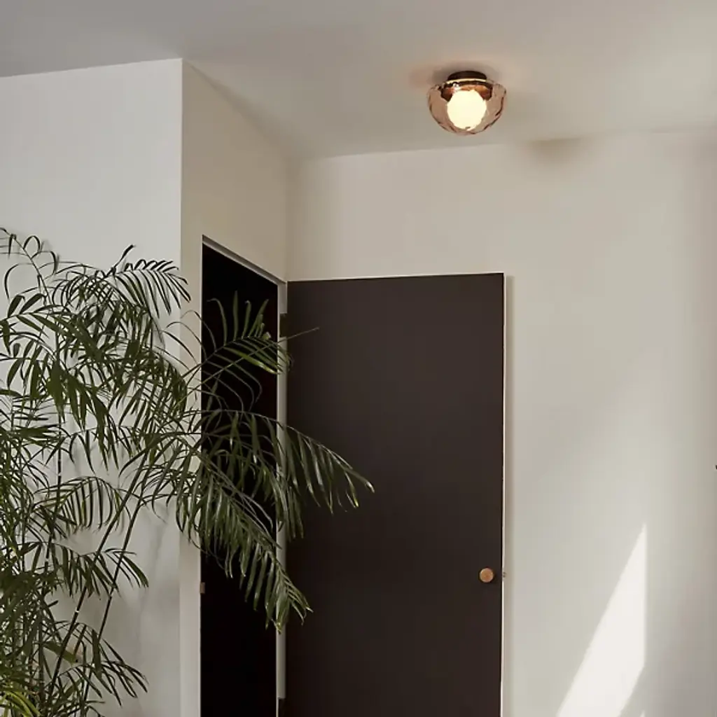 The Pearl LED Flushmount from Roll & Hill channels 1980s glam with a sculptural, shell-inspired silhouette. Designed to evoke an oyster revealing its treasure, a central LED diffuser shaped like a pearl nestles beneath a dome of handblown Italian glass. Each glass shade carries the subtle irregularities of its artisanal construction, creating depth and individuality. Anchored by a brass disc canopy, the fixture glows with warm, ambient light, highlighting its layered, expressive form.