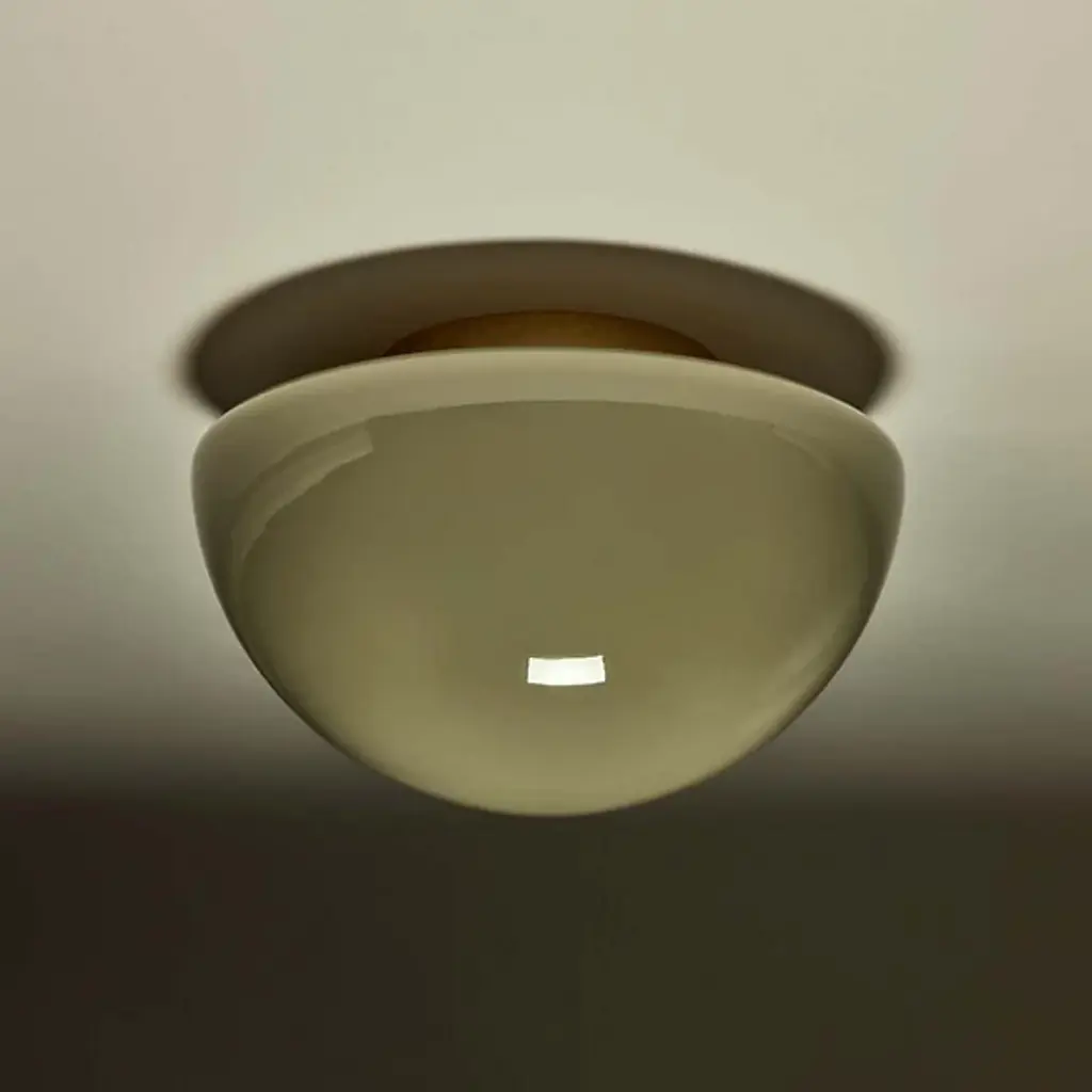 The Pearl LED Flushmount from Roll & Hill channels 1980s glam with a sculptural, shell-inspired silhouette. Designed to evoke an oyster revealing its treasure, a central LED diffuser shaped like a pearl nestles beneath a dome of handblown Italian glass. Each glass shade carries the subtle irregularities of its artisanal construction, creating depth and individuality. Anchored by a brass disc canopy, the fixture glows with warm, ambient light, highlighting its layered, expressive form.