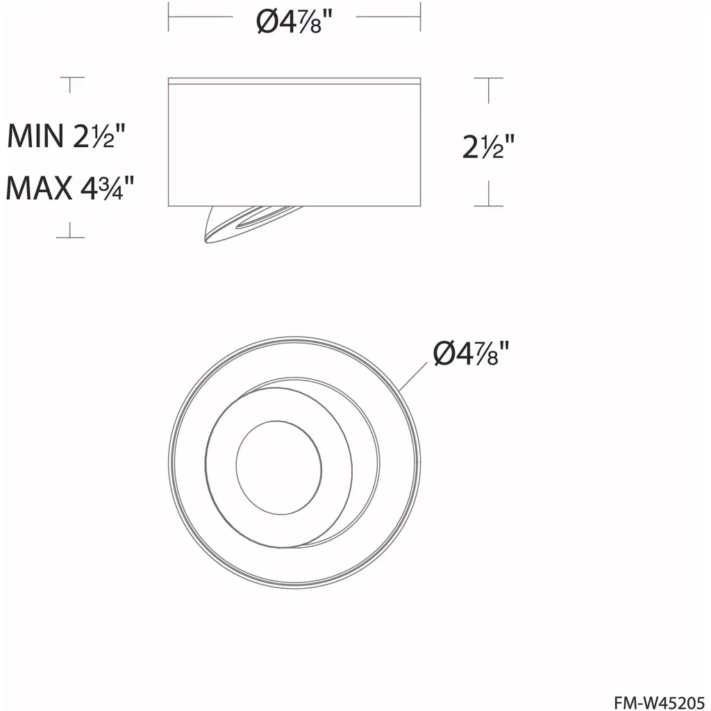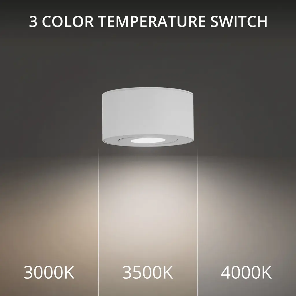 Take a Peek at this new luminaire... An indoor or outdoor surface mounted luminaire from dweLED by WAC. Accent a barbecue or throw spot illumination on a basketball court in a driveway. This adjustable spot rotates in the field with the touch of your hand. Available in matte white or matte black finishes. This 5-inch LED luminaire is designed with an adjustable beam angle up to 40 degrees and a rotatable gimbal ring. Order with your desired color temperature and use the built-in color temperature adjustability switch to adjust from soft white 3000K, to bright white 3500K, or 4000K white daylight. Peek conceals a 120-220-277 volt universal input driver. Mounts on a ceiling or wall and is ETL/cETL listed for outdoor lighting applications. State of the art technology is used to project illumination with a high 90 color rendering index and long lasting 50,000 hours of rated life. This luminaire dims beautifully with an electronic low voltage or TRIAC dimmer using 9 watts and delivering up to 856 lumens. Peek is California Title 24 rated and meets the highest energy efficient requirements. Adjustable and functional.