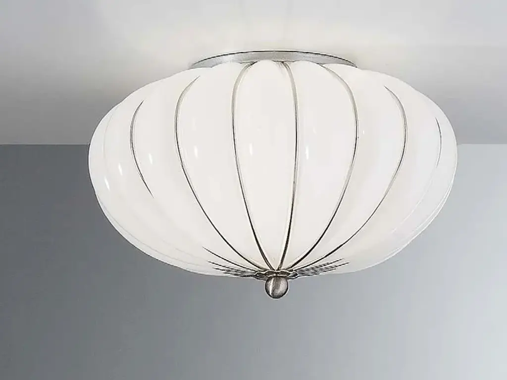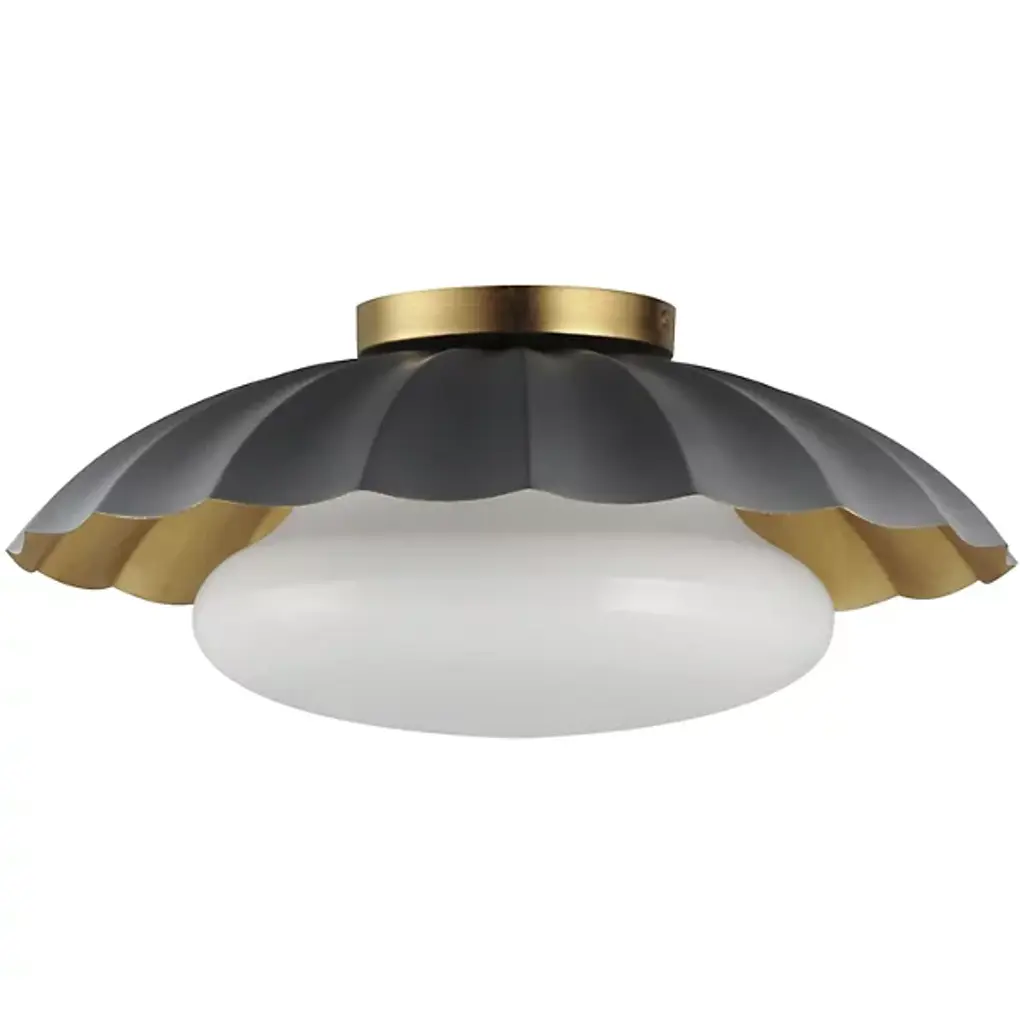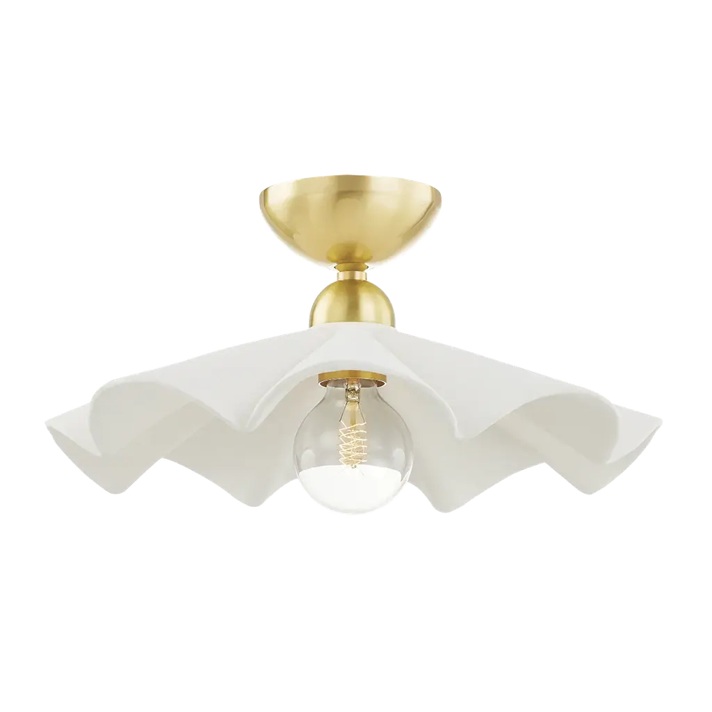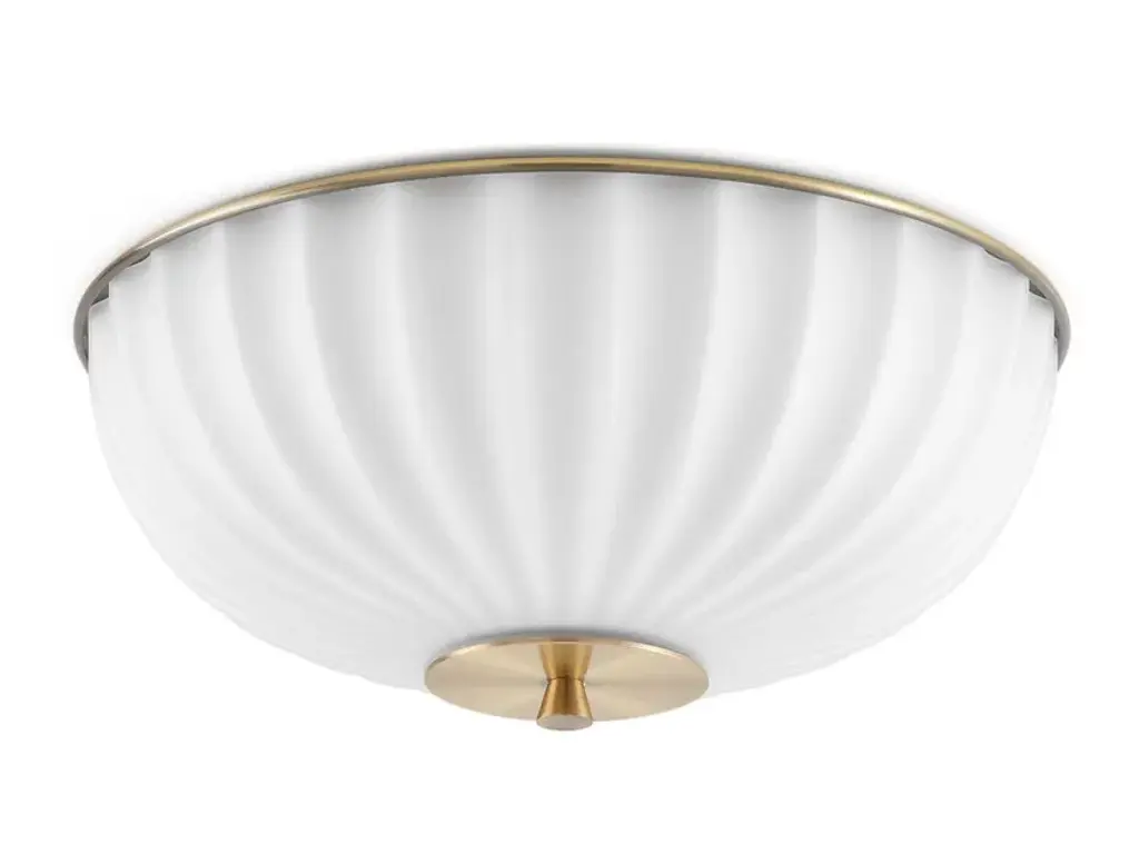 Penelope stands out as a flush mount with flare. The fluted ceramic shade is simply divine, featuring a vintage gold leaf interior that lends an earthiness to the design. An opaque shade houses a single light source, diffusing the light naturally.