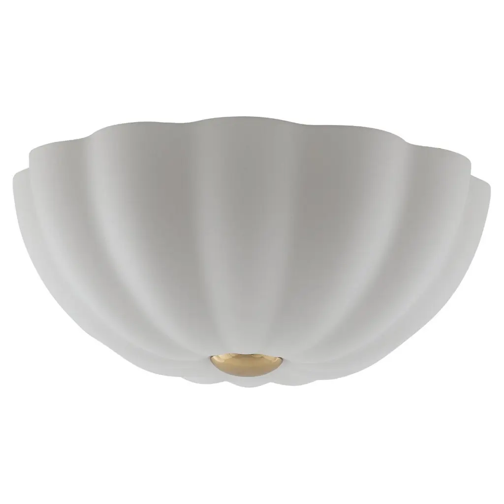 Presented by Mitzi, the Penelope Flushmount stands out with flare. The fluted ceramic shade is simply divine, featuring a reflective interior that lends a luxurious feel to the design. An opaque shade houses a single light source, diffusing the light naturally. It sits close to the ceiling yet draws the eye gently due to a decadent attention to detail.