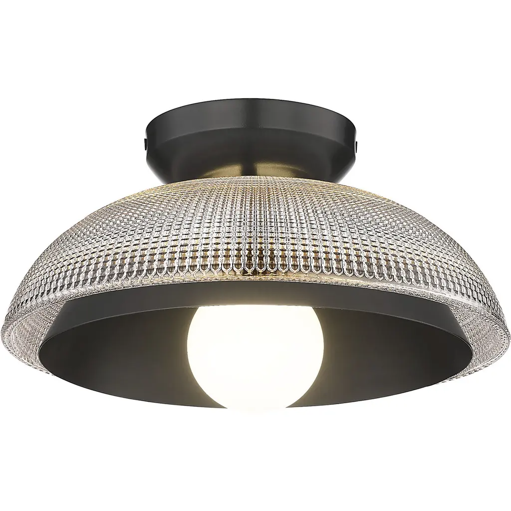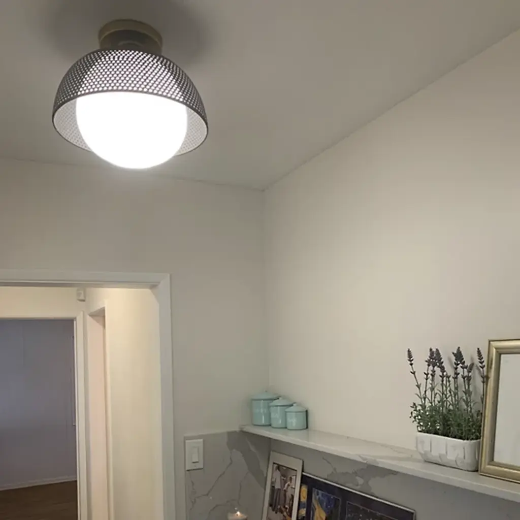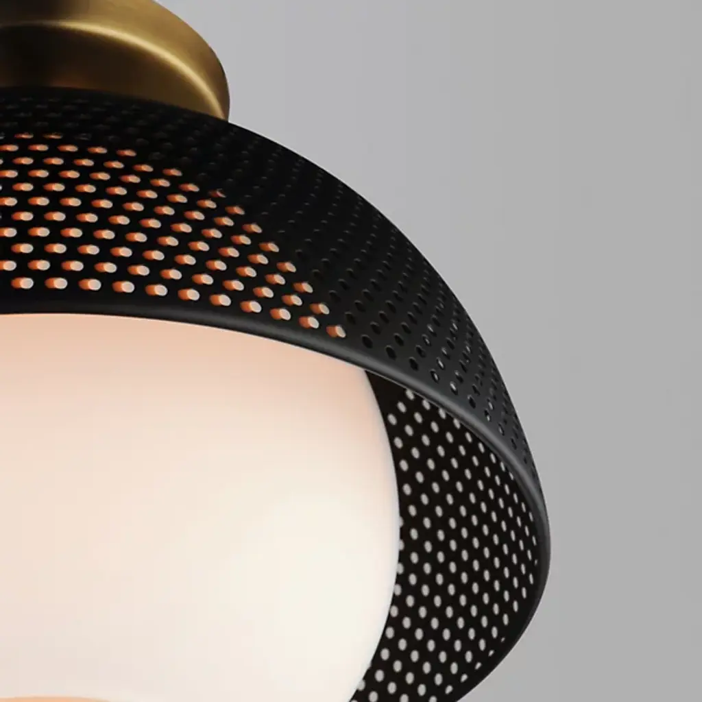 Introduce a unique display of light and shadow to the décor of your home with the Perf Flushmount from Maxim Lighting. Hanging just below the ceiling, this piece showcases a spherical glass shade and a surrounding layer of smooth, spun metal with perforated detail. The result is a dappled effect that spreads over the room when the single bulb within the shade comes to life. The light is bright and even, diffusing through the layers with ease.