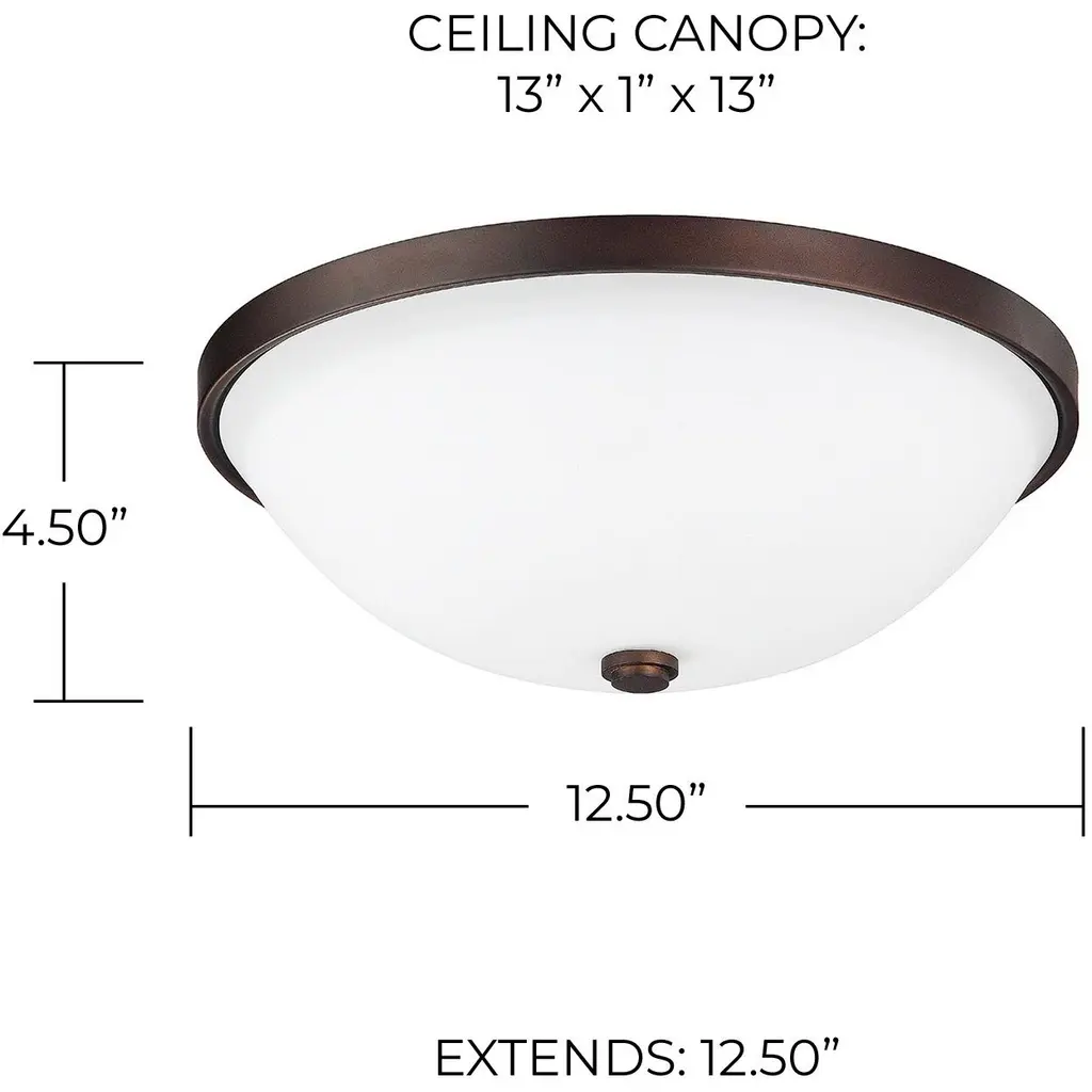 The soft white glass of the 2-Light Flush Mount is trimmed with a classic metal rim and finial in our Burnished Bronze finish. Its versatile style makes it the perfect accent for bedrooms, bathrooms, staircases, laundry rooms, storage areas and more.