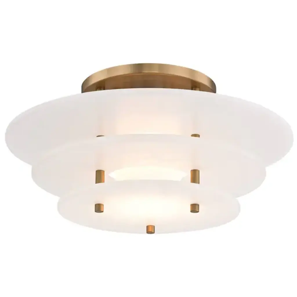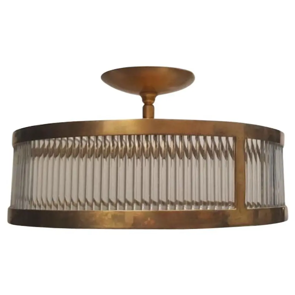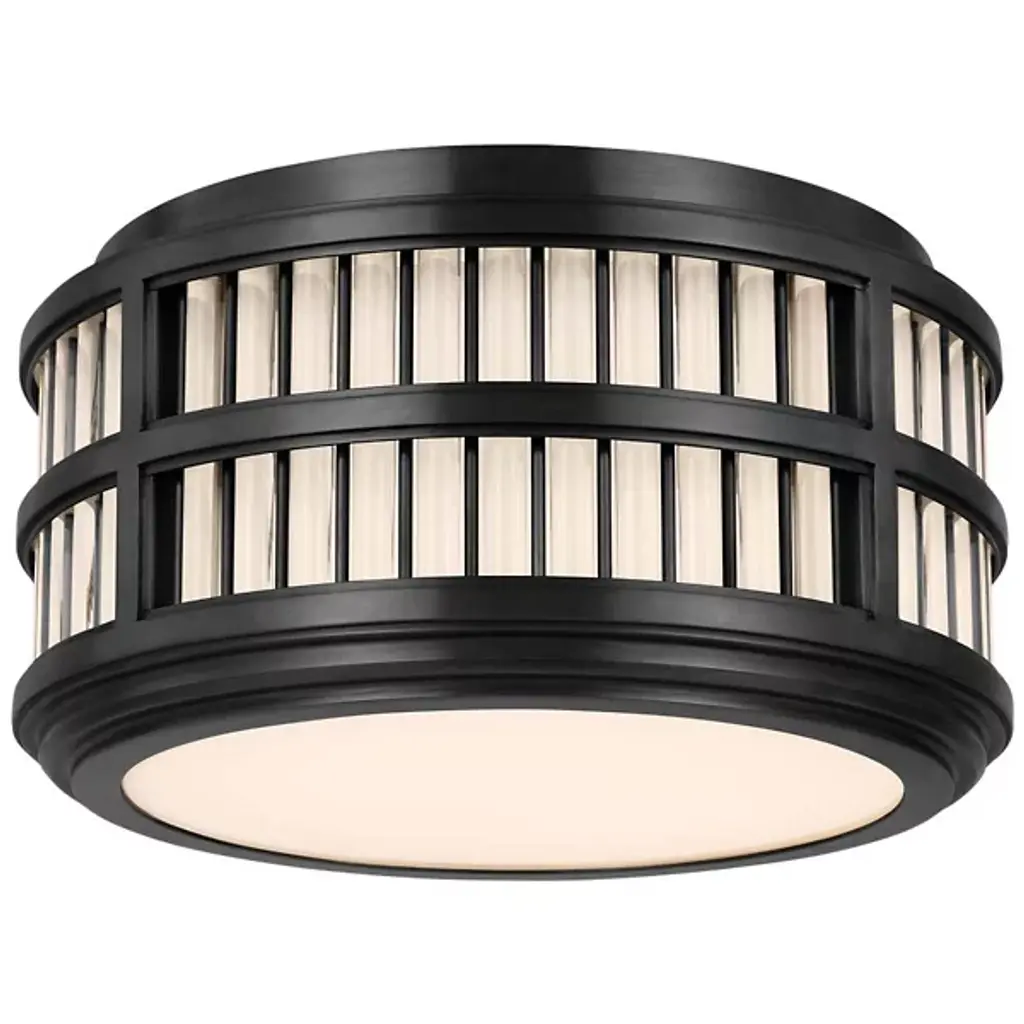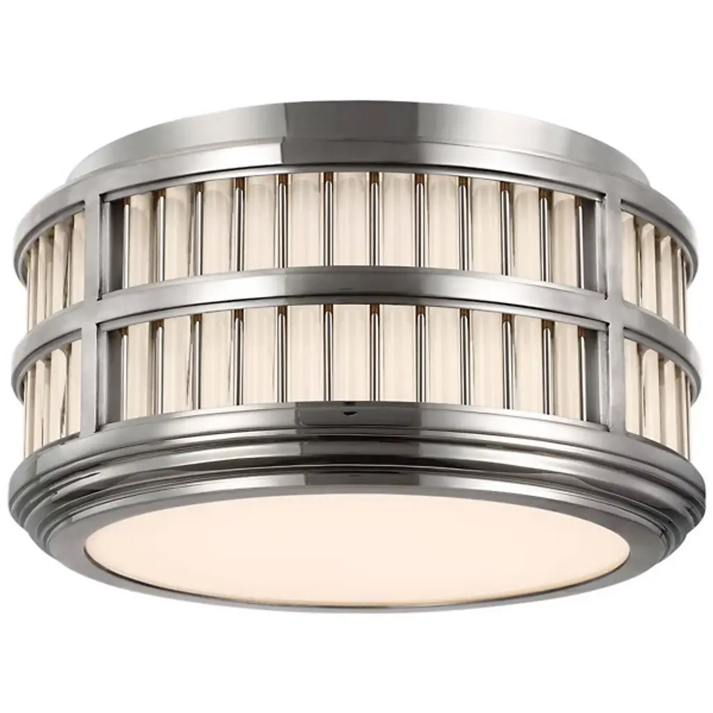 The Perren LED Flushmount by Visual Comfort Signature, formerly known as Visual Comfort, has a cool, contemporary build that brings a beautiful mix of form and function to spaces. With a layered build, a collection of glass rods are set within a structured metal frame that allows plenty of ambient illumination to spill out onto surroundings and highlight the construction of this design. A round glass shade caps off this flush mount, and the clean lines expressed throughout the frame are dressed up with a lovely finish, lending a tailored touch to this design.