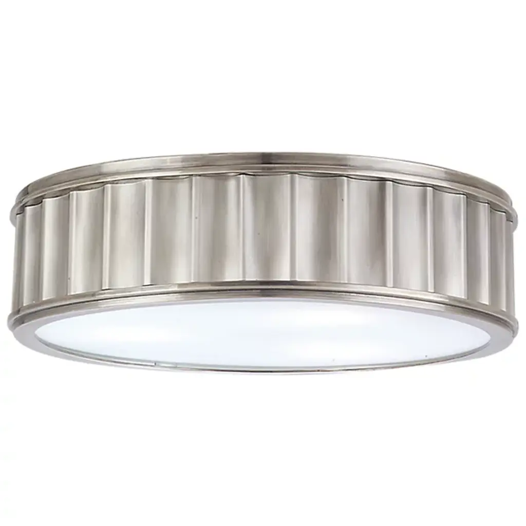 The Perren LED Flushmount by Visual Comfort Signature, formerly known as Visual Comfort, has a cool, contemporary build that brings a beautiful mix of form and function to spaces. With a layered build, a collection of glass rods are set within a structured metal frame that allows plenty of ambient illumination to spill out onto surroundings and highlight the construction of this design. A round glass shade caps off this flush mount, and the clean lines expressed throughout the frame are dressed up with a lovely finish, lending a tailored touch to this design.