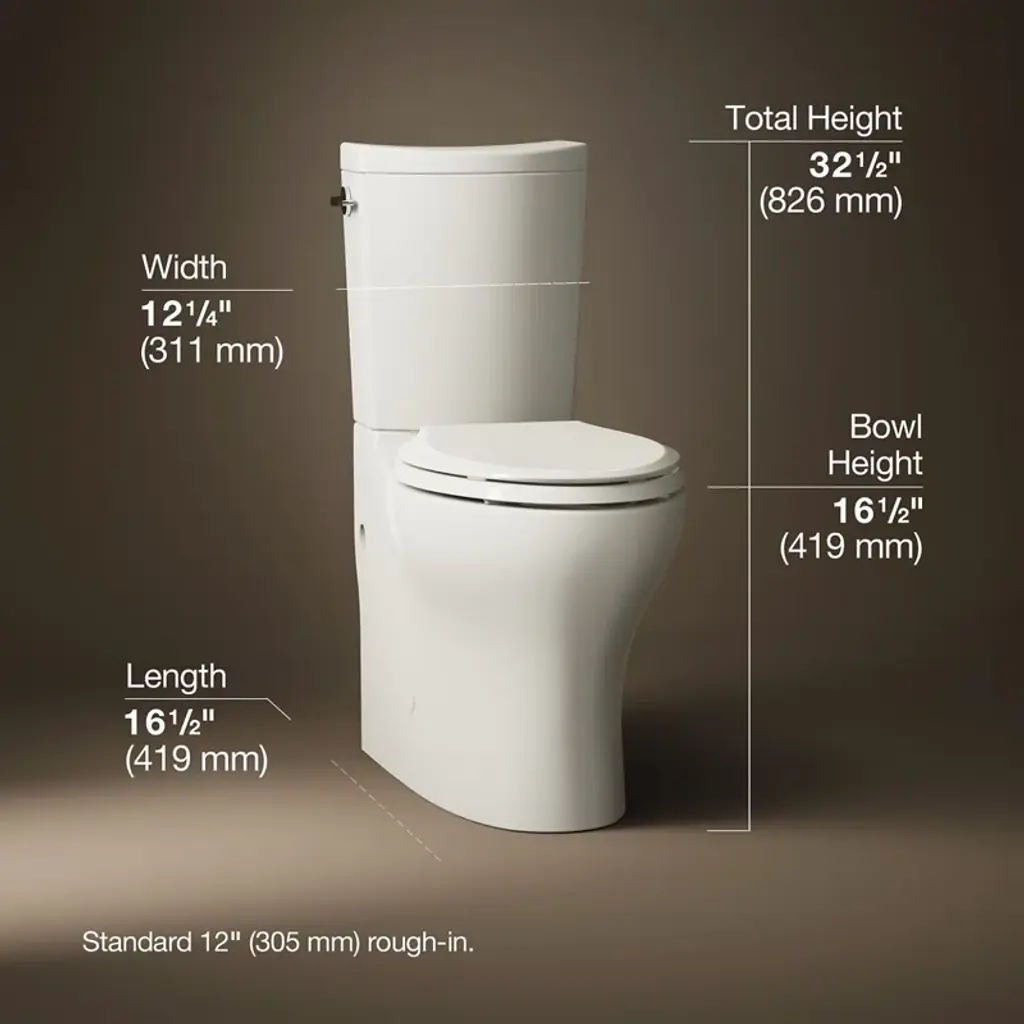 With sleek symmetry, this two-piece Persuade® Curv toilet adds style to the bathroom without sacrificing comfort or water savings. An innovative nested trip lever offers the choice of 1.0 or 1.6 gallons per flush; the dual-flush lever is located on the side of the tank like a traditional toilet, leaving the top free for storage. The high-efficiency 1.0-gallon flush setting reduces water use by more than 30 percent over 1.6-gallon toilets, which adds up to potential water savings of more than 5,000 gallons per toilet, per year. The skirted trapway is installed to the floor flange and attaches to the toilet, eliminating the need to drill holes while offering the same secure installation as non-skirted toilets.