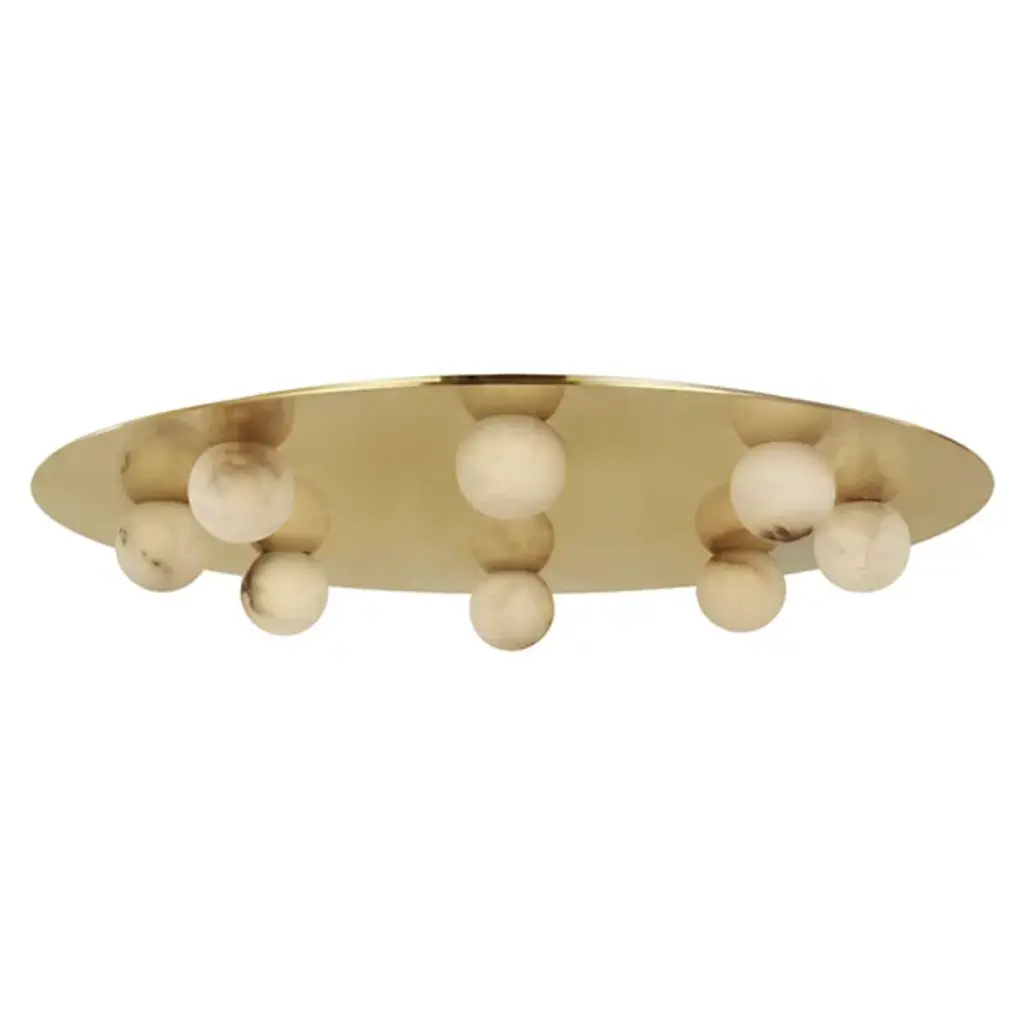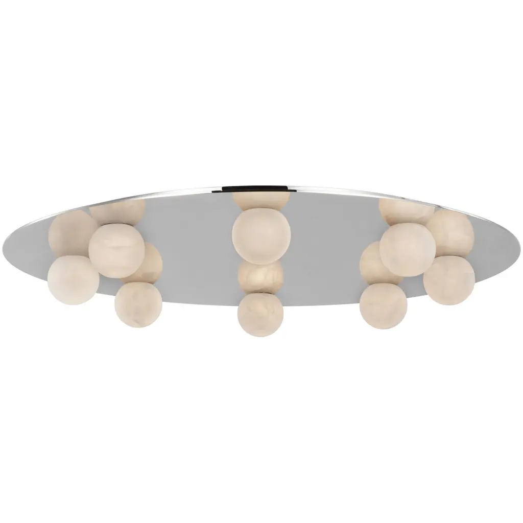 Presented by Visual Comfort Signature, the Pertica LED Flushmount is designed by Kelly Wearstler. With its flat, saucer silhouette crafted from metal, the flushmount holds multiple orbs of alabaster shading along its outer perimeter, creating a mesmerizing composition that catches the eye. Its low-profile design allows it to make a dramatic impact in both small and large spaces alike. It features eco-friendly integrated LED illumination, enveloping your space in a warm and inviting glow.