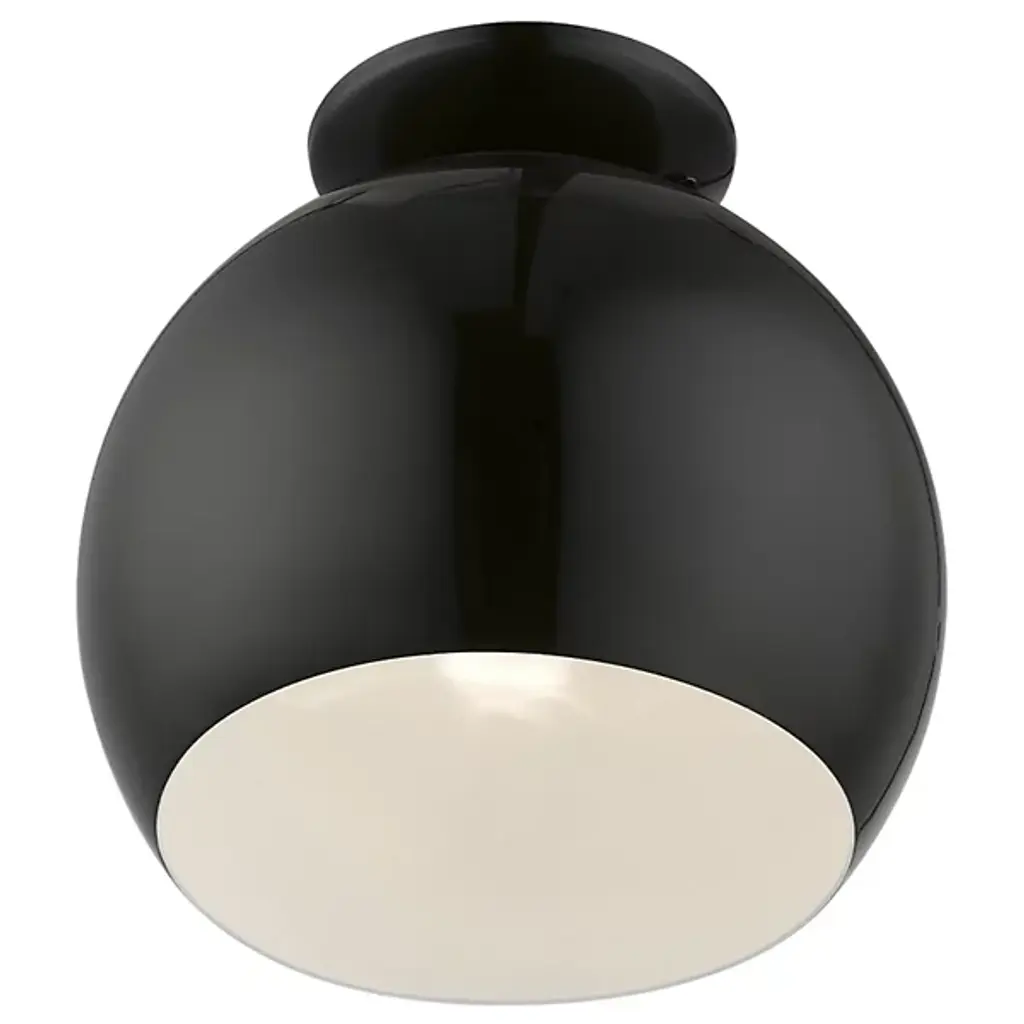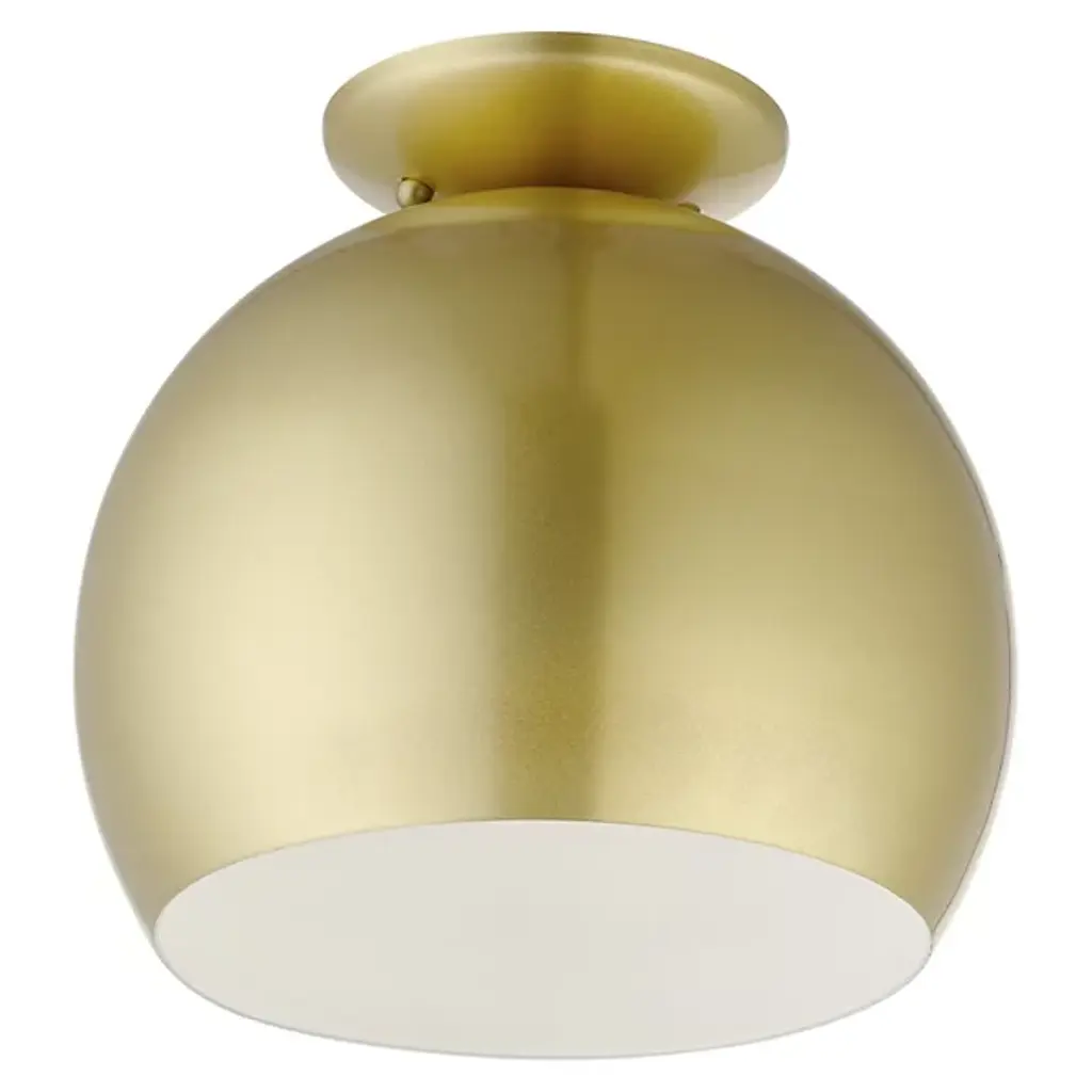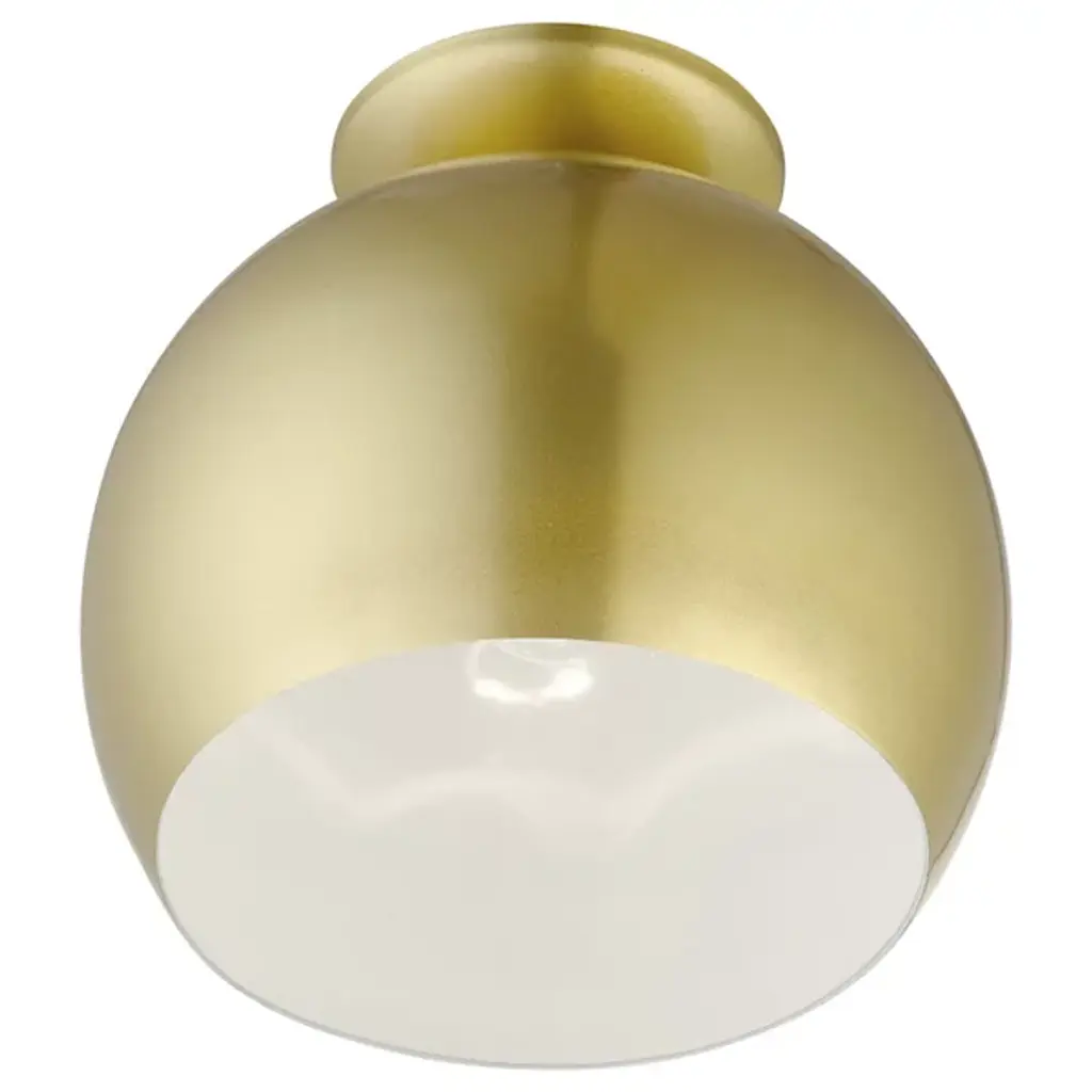 The Peterson Flushmount from Alder & Ore distributes a comfortable glow as soft as its curves. This light reaches one’s eyes with reduced glare as the shade conceals the lamping from the sides with a white painted interior. Crafted from turned metal, the charming hemisphere shade also narrows the light’s beam through its opening for a mellow down glow. The shade and the canopy visually jump off the ceiling with their metallic surfaces. The disc canopy sits at an ultra-low profile overhead, making the piece ideal over low ceilings and tight spaces.