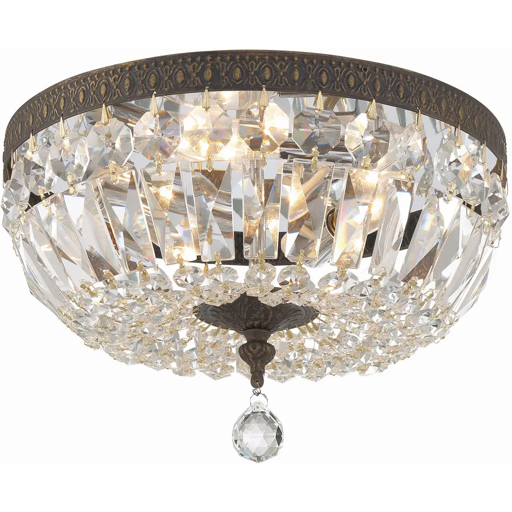 Petit Crystal 3 Light Heirloom Bronze Flush Mount Ceiling Light In Optic