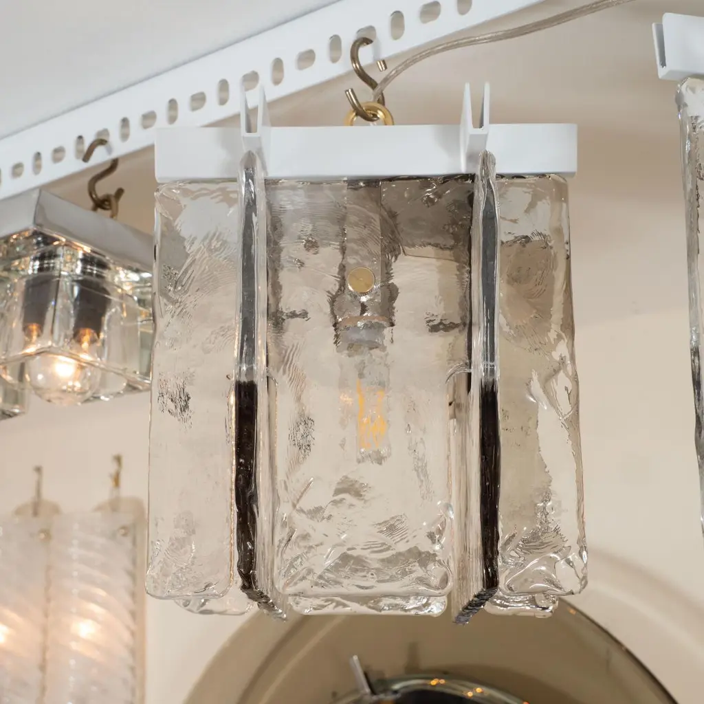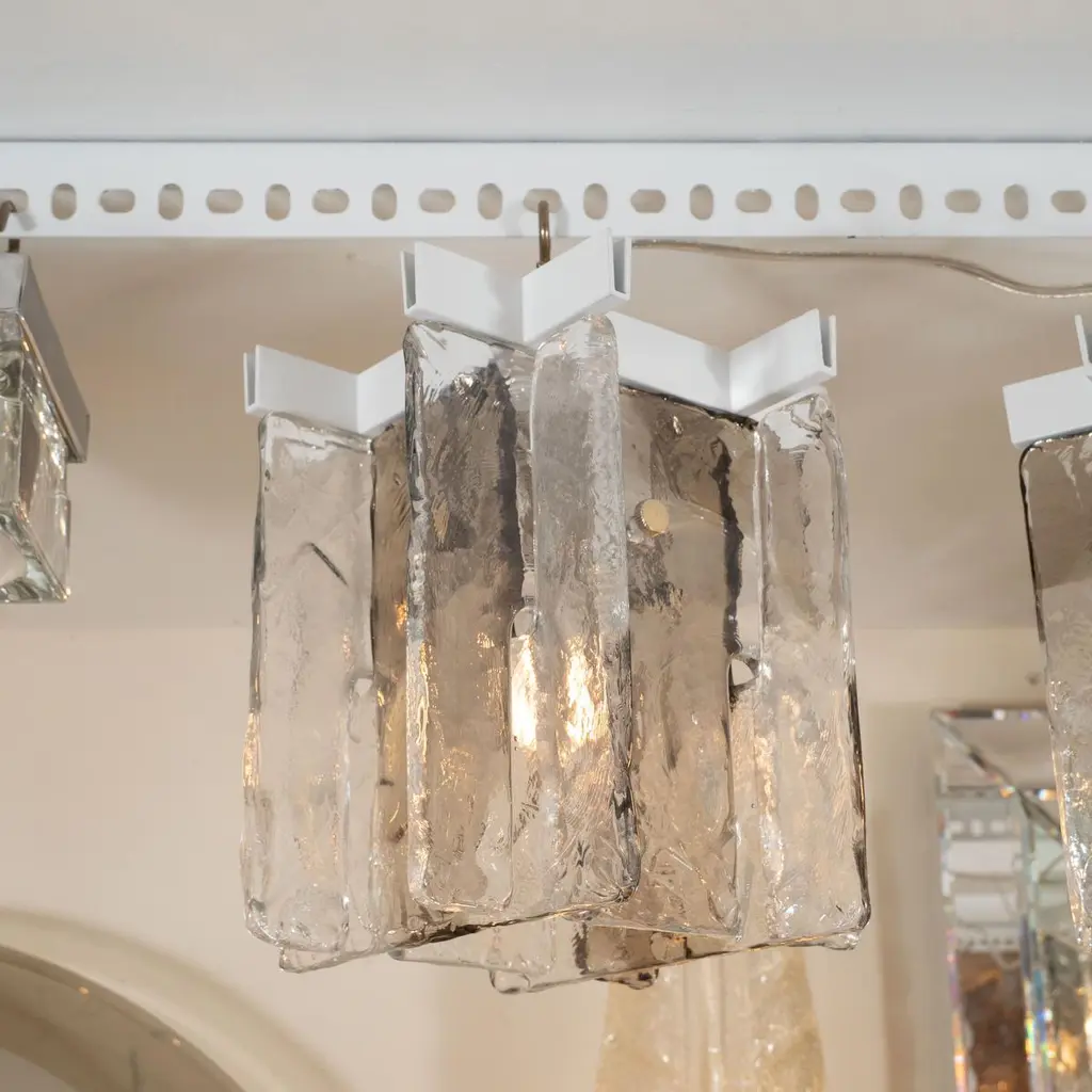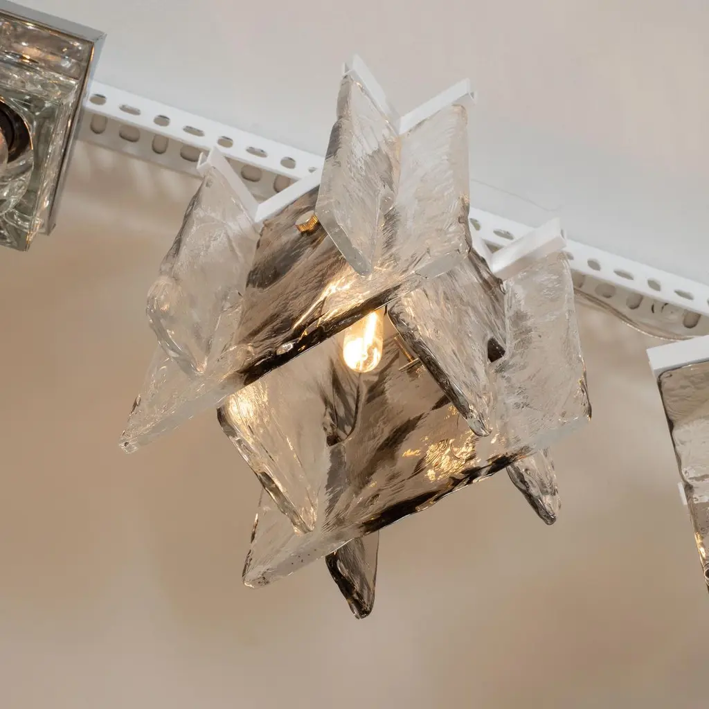 Petite intersecting smoky and white glass flush mount ceiling fixture by Mazzega.