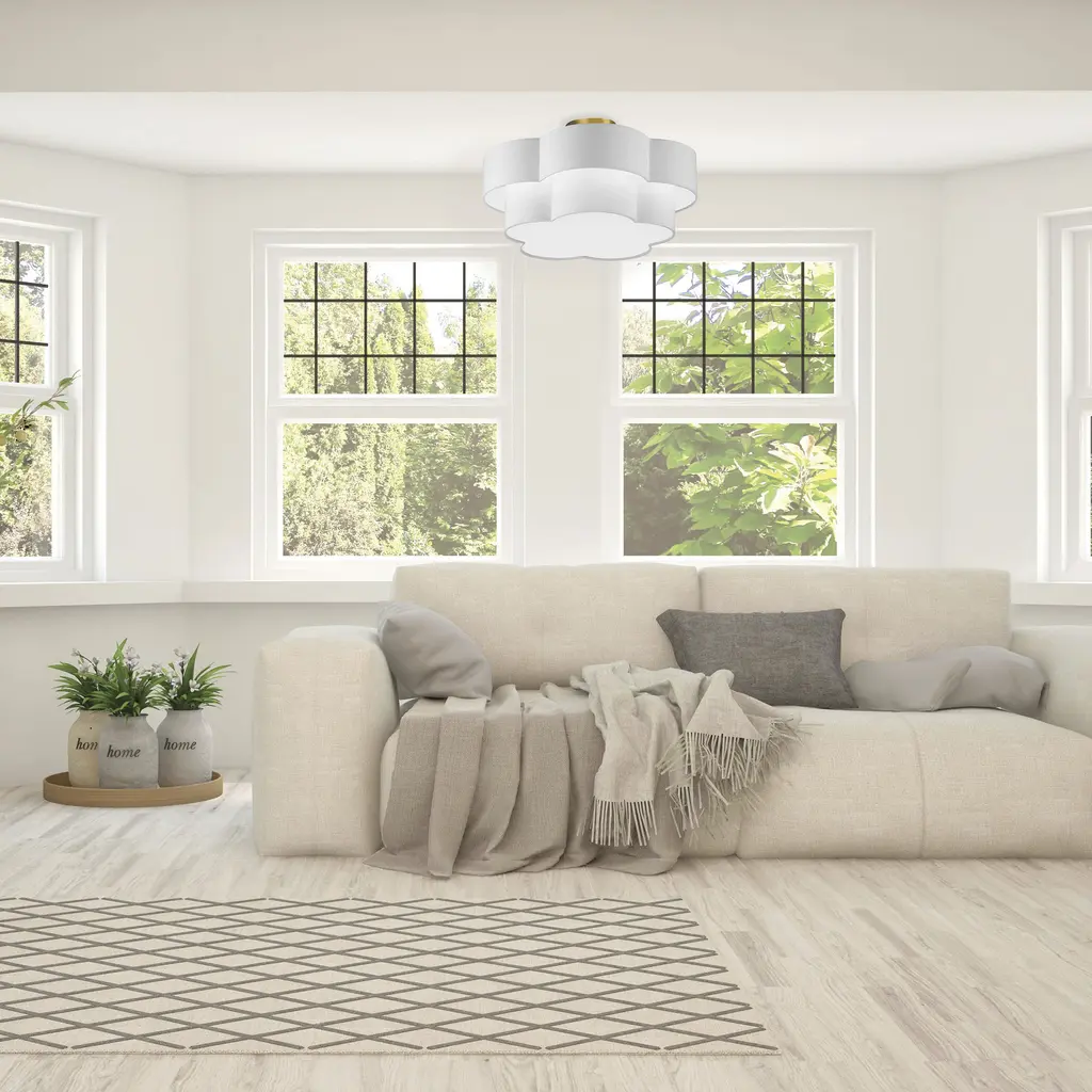 Phlox 3 Light 20 Inch Aged Brass With White Flush Mount Ceiling Light