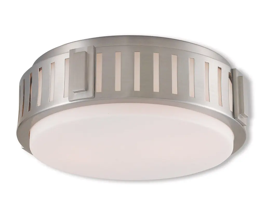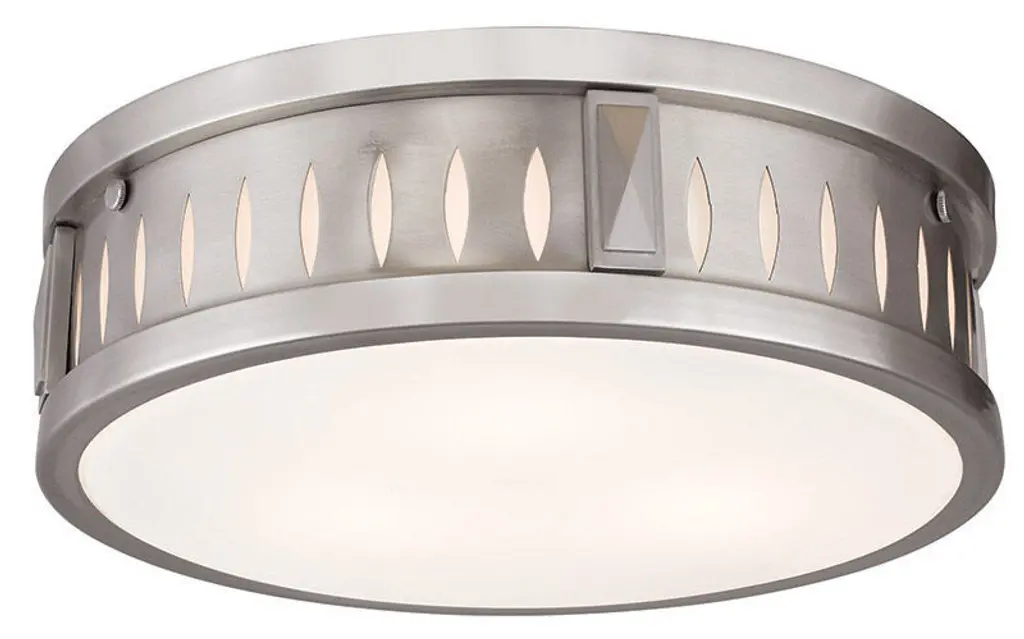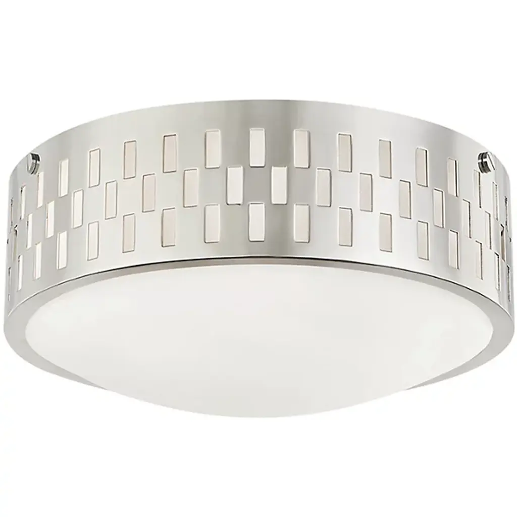 Modern elegance with a touch of industrial. Mitzi by Hudson Valley's Phoebe Flushmount is suitable for just about any room in the house, and comes with a Steel frame and Glass shade. The frame is detailed with small rectangular cutouts, lending an industrial spin to this versatile contemporary design. Light is diffused beautifully through the shade and is cast downwards. This ceiling mount is ideal for the bedroom, foyer, hallway or living room, and will provide the illumination you're looking for. It effortlessly accentuates your decor and furnishings and doesn't take away attention from your style.
