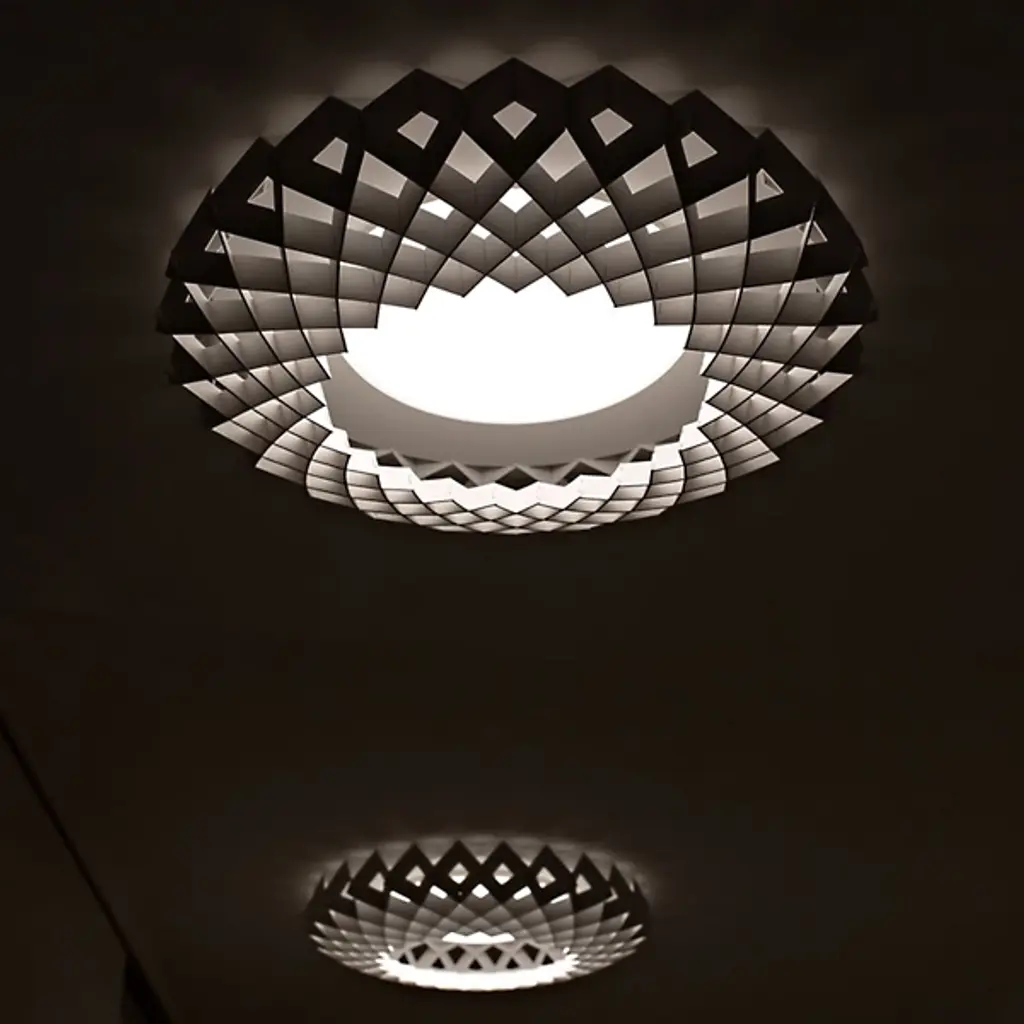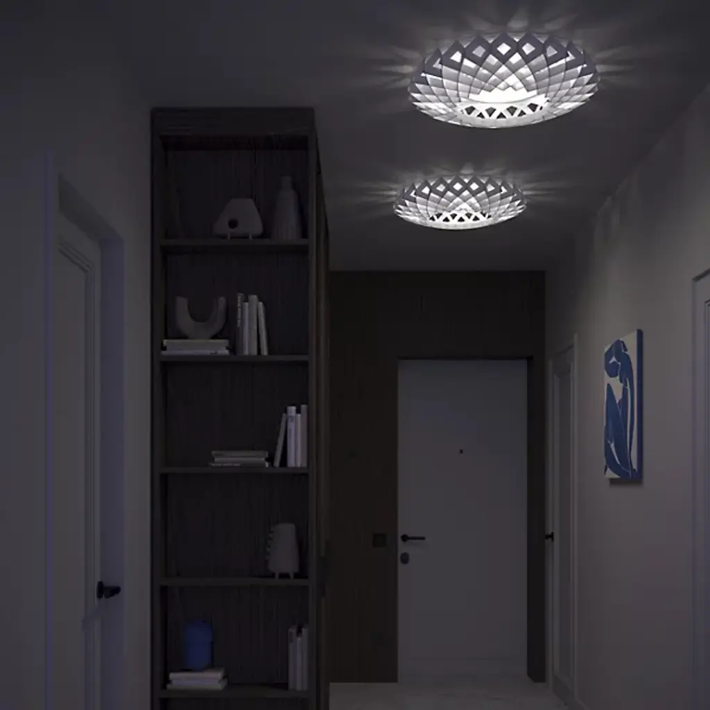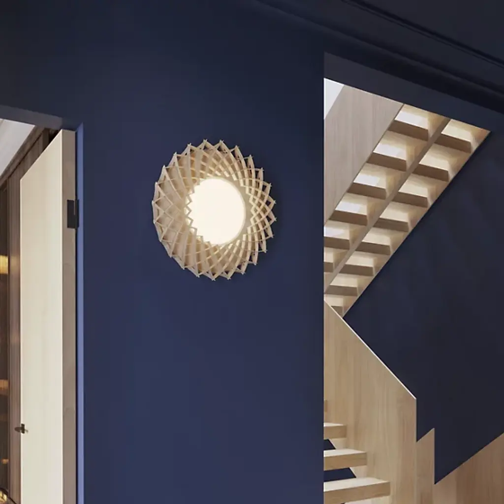 Bring a stylish presence to your indoor living spaces with the intricate and involved Pilke 65 LED Wall / Flushmount from Pilke Lights. Created by Finnish industrial designer Tuukka Halonen, the name “Pilke” means “Sparkle” in Finnish, and this enticing fixture does exactly that. A round canopy secures an integrated LED lamp to its lower surface, surrounded by a torus structure of sustainably harvested birch shingles arranged in an interlocking geometrical pattern without using any pins or adhesives by Finnish craftsmen. This clever design cuts glare from the sides while dispensing a wide wash of ambiance below.