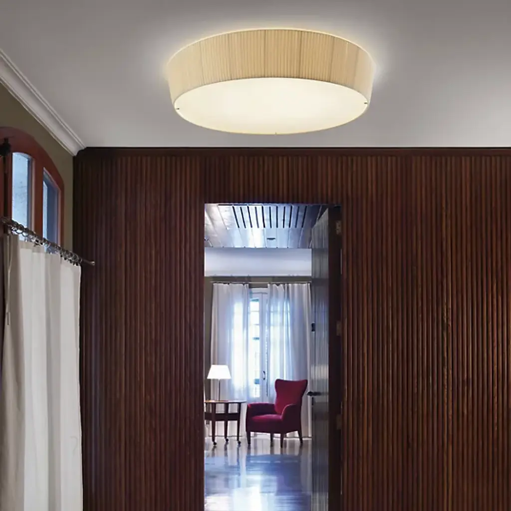 Tastefully simple. The Bover Plafonet Fonda Flushmount provides ample diffuse light for a wide variety of design schemes. The fabric shade looks crisp and clean, while the bottom Frosted Opal glass diffuser ensures clean, bright light.