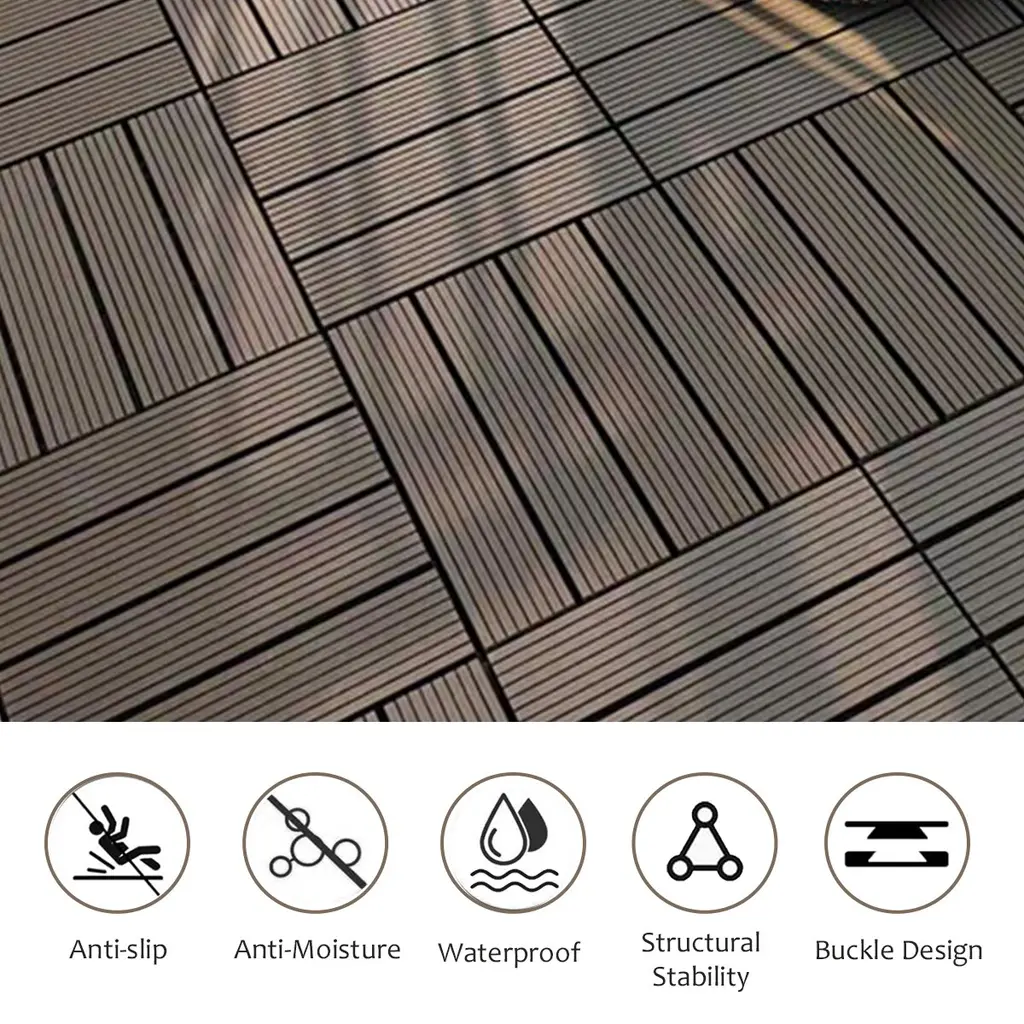 Plastic Composite Deck Tiles Set Of 35pcs, Composite Decking Resist Rust, Water, Weather - Coffee