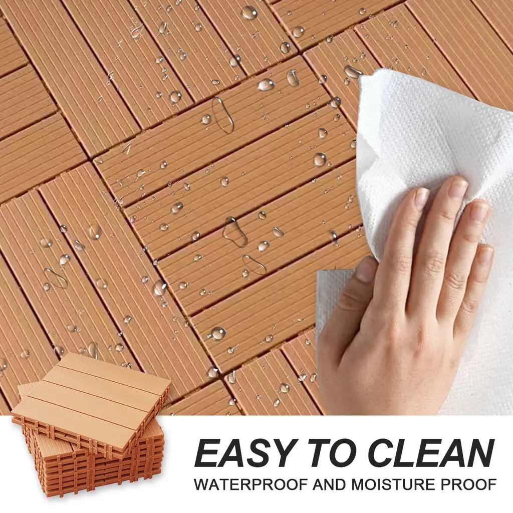 Plastic Composite Deck Tiles Set Of 35pcs, Composite Decking Resist Rust, Water, Weather, Indoor&outdoor, Easy To Diy & Maintain - Wood