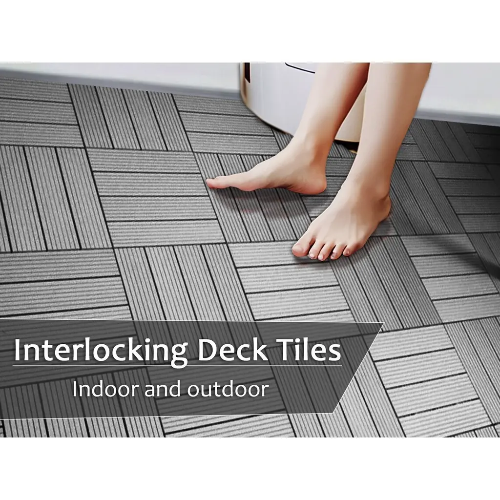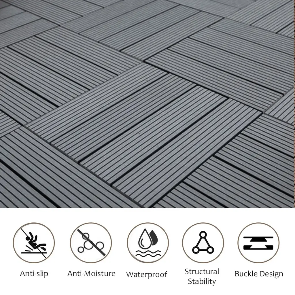 Plastic Composite Deck Tiles Set Of 35pcs, Composite Decking Resist Rust, Water, Weather - Light Grey