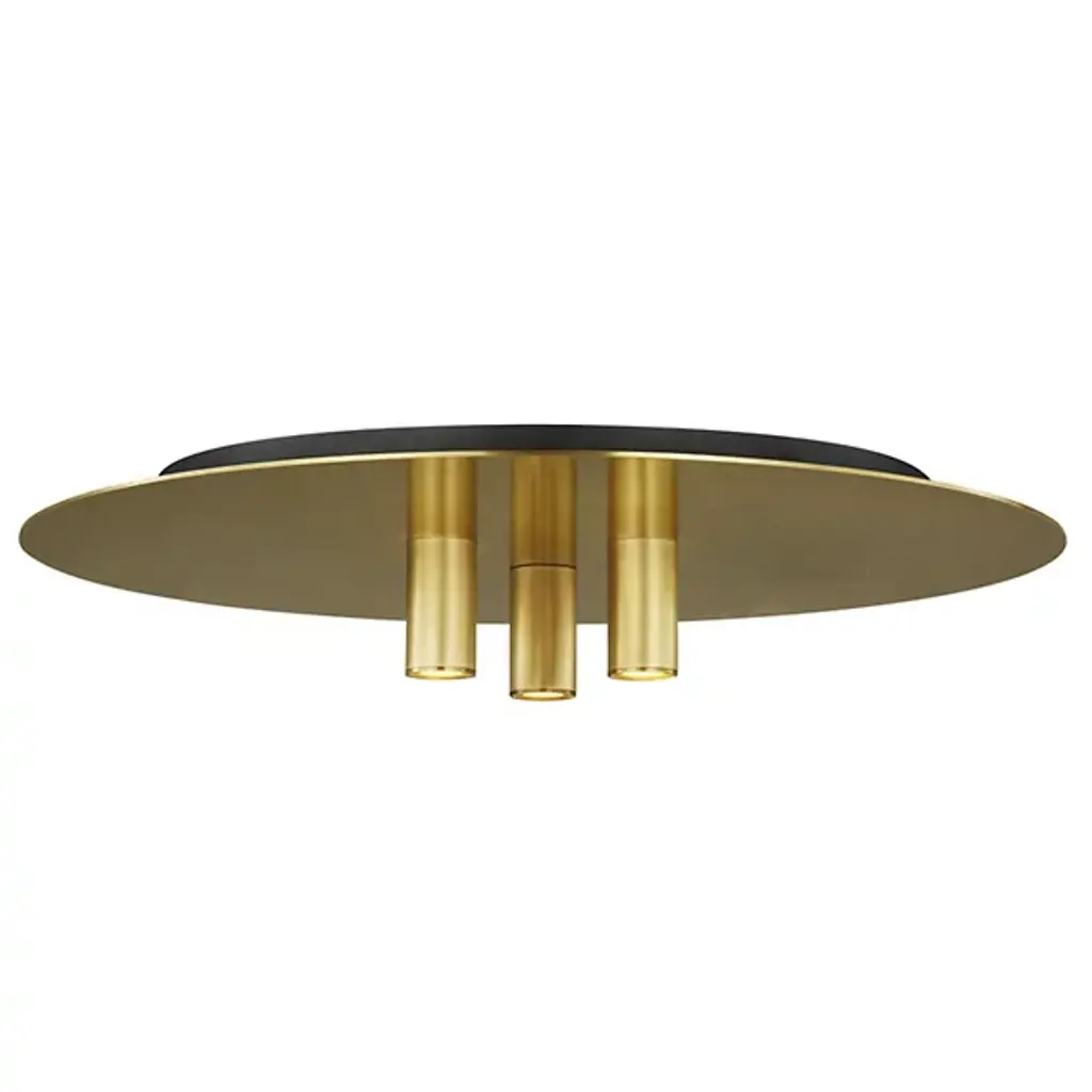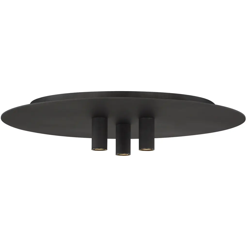 The Ponte LED Flushmount 277V from Tech lighting is a piece of understated architectural lighting inspired by the epic Ponte Skyscraper in Johannesburg, South Africa. The flush mount calls attention to modern architecture with an elegant collection of modern shapes. To complement a range of settings, the piece mounts to the ceiling with an ultra-low-profile canopy. Crafted from metal, the canopy draws a neat circular shape overhead. The piece suggests the tall, cylindrical architecture of the Ponte building with an arrangement of cylindrical lamp heads. The heads generate a gentle downlight, perfect for accenting a space.