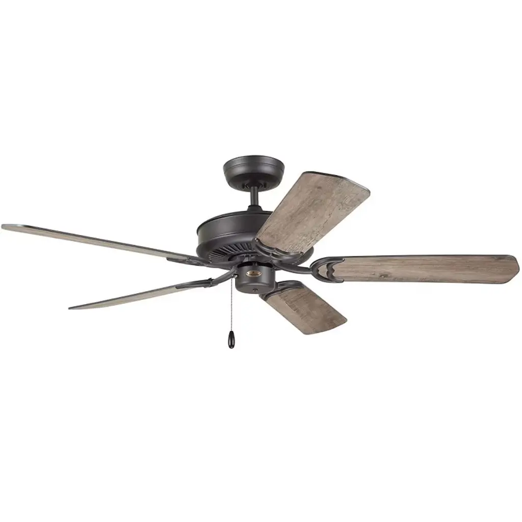 The Portage Bay 42-Inch Viretta Ceiling Fan brings a touch of refined elegance wherever it's installed. Engineered with a quiet, 3-speed reversible motor, this fan delivers refreshing relief during hot days and efficiently reverses to circulate warm air in cooler seasons, ensuring year-round comfort. Built with a wet rating, the Viretta is rugged enough for outdoor spaces like covered patios, porches, pergolas, and gazebos, yet sophisticated enough to complement interiors such as bedrooms and living areas. The fan features an energy-conscious LED light fixture equipped with E26/A15 bulbs, providing bright, long-lasting illumination that keeps energy bills in check and maintenance minimal. Style meets versatility in the fan’s five (5) dual-finish blades, offering refined color options that pair perfectly with both contemporary and classic décor schemes. Whether your aesthetic leans modern, farmhouse, or coastal, Viretta blends in beautifully. Thanks to its tri-mount design, the Viretta handles all setups, standard downrod, angled ceiling, or flush-mount, making installation a breeze in any space configuration. Built from durable materials and supported by the Portage Bay commitment to quality, this 42-inch Viretta ceiling fan delivers comfort, convenience, and timeless design you can count on......