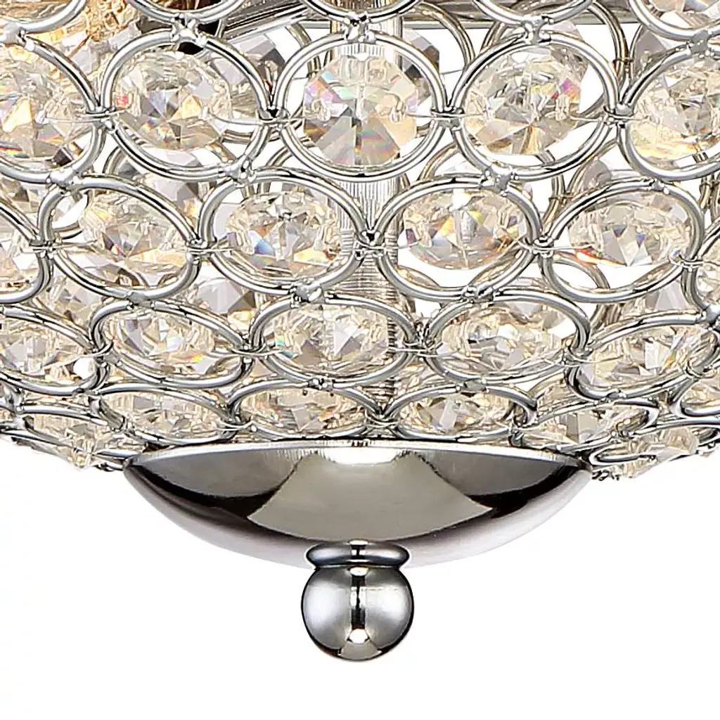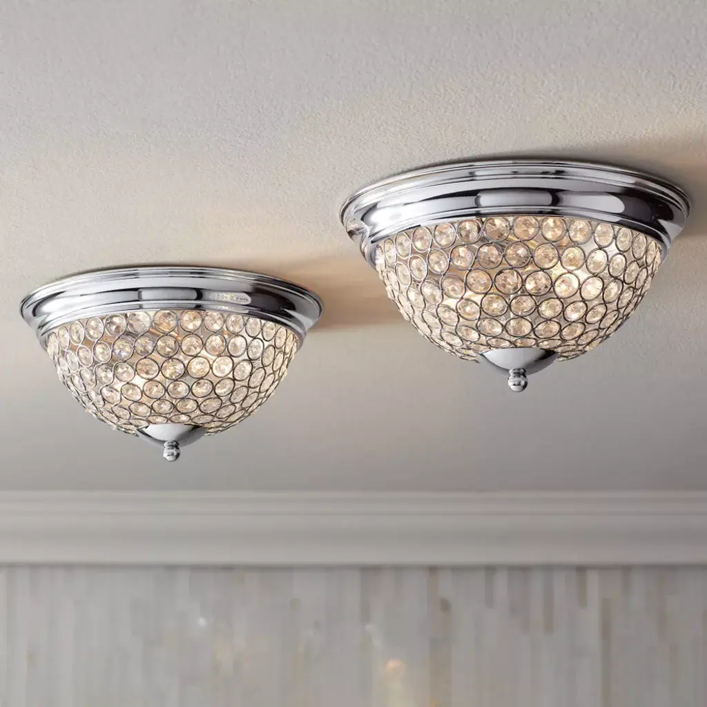 Use this pair of flushmount ceilings lights to illuminate a hallway or coordinate lighting decor in different rooms. This beautiful design features round crystal elements set against a ring mesh grid. The top ceiling canopy and the bottom accents are dressed in a gleaming chrome finish.
