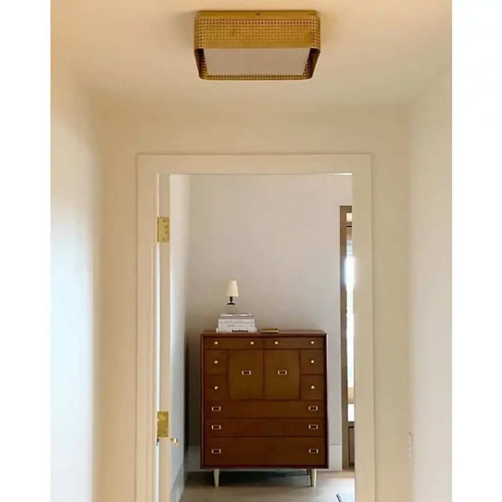 The Visual Comfort Signature, formerly known as Visual Comfort, Precision Flushmount is an intriguing blend of contrast and the classic 'form follows function' design principle. The opaque glass diffuser is juxtaposed against a metal frame, with dozens of small holes to further diffuse the illumination. Modern with a subtle Mid Century Modern edge, this less is more lighting option still packs a punch.